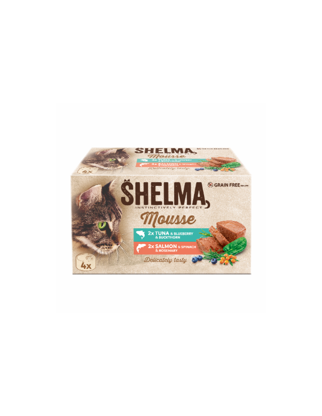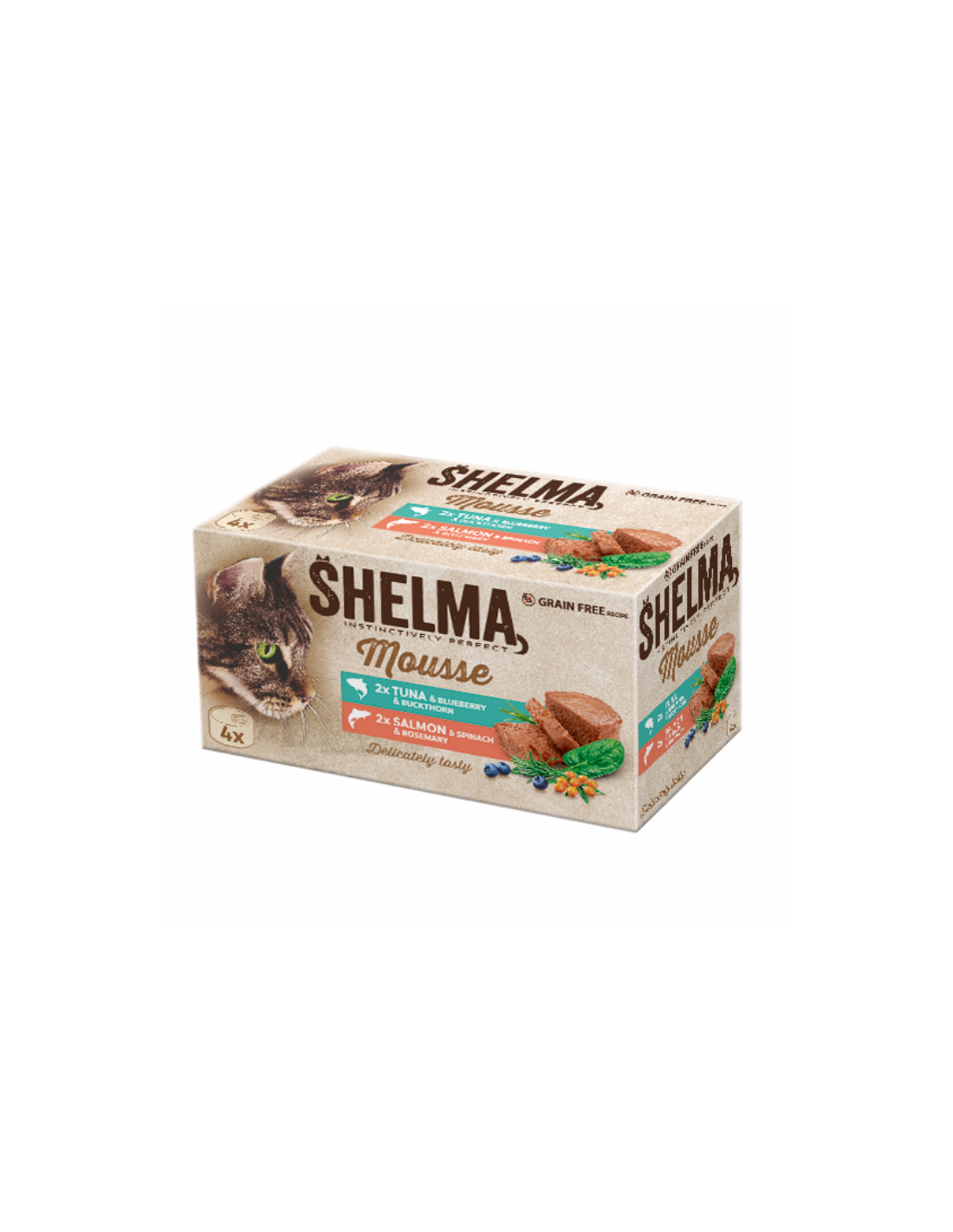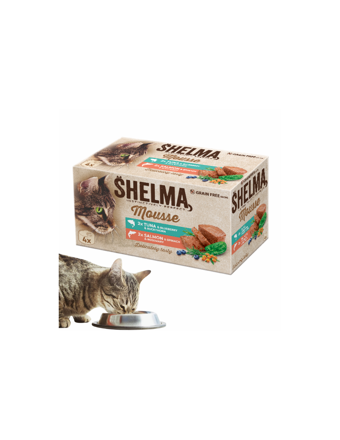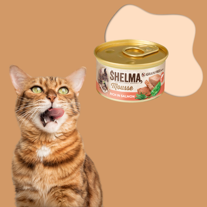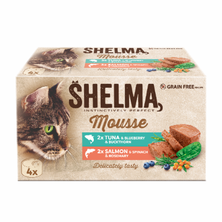 SHELMA mus dla dorosłych kotów z łososiem i tuńczykiem 4x85g