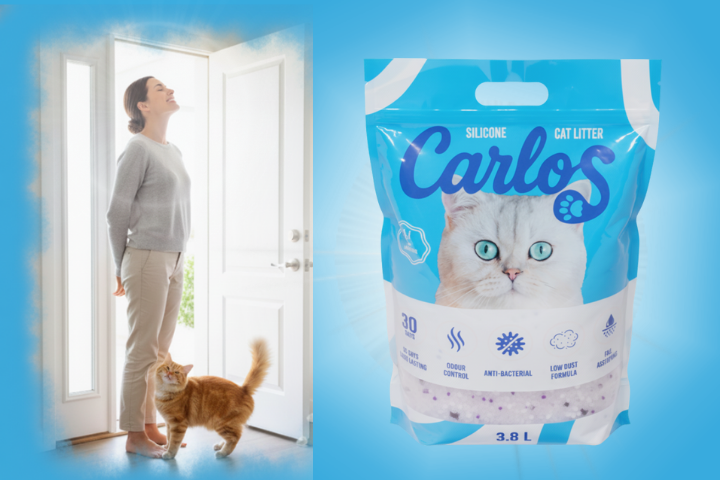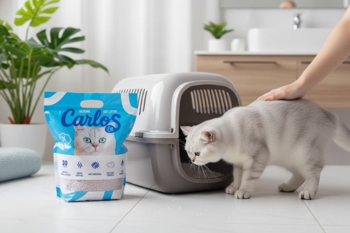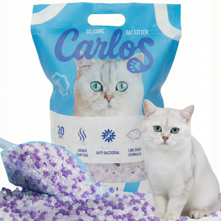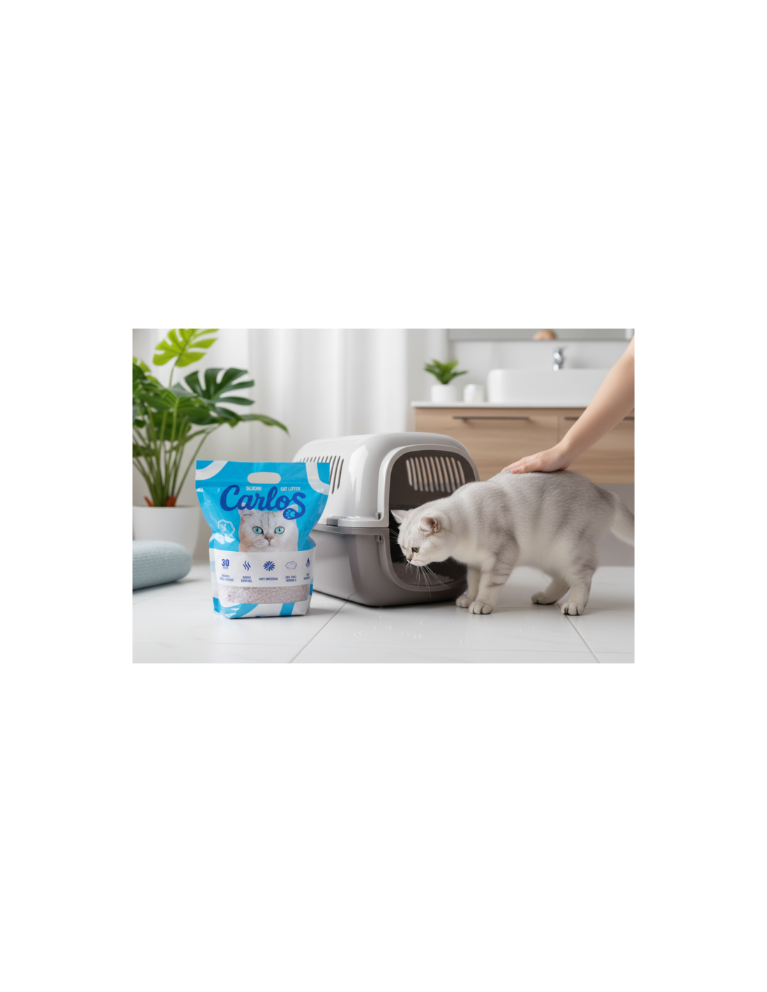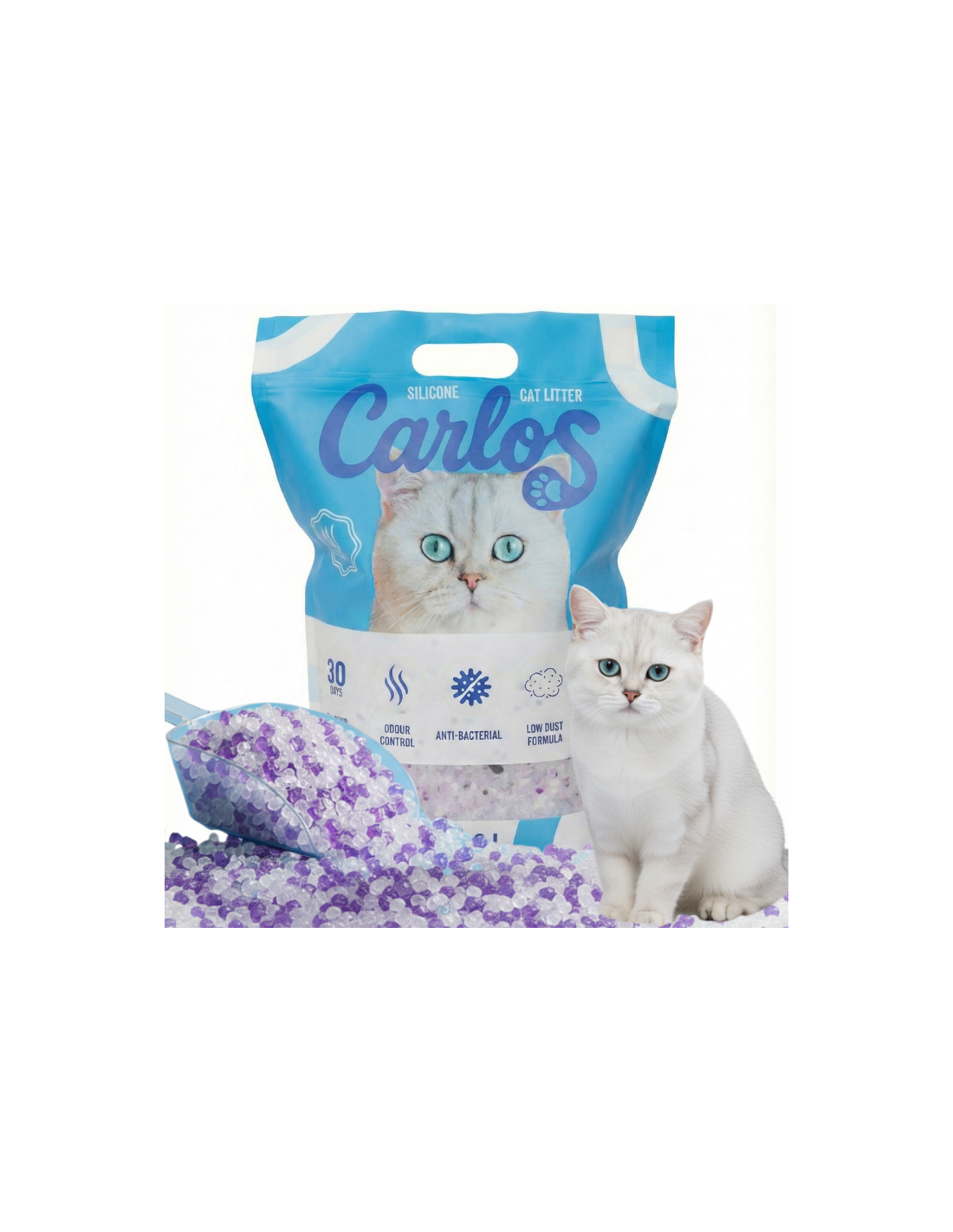 CARLOS Żwirek silikonowy dla kota bezpyłowy antybakteryjny na 30 DNI