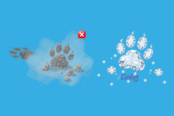 CARLOS to żwirek nie zbrylający się. Nie tworzy lepkiego "błota" ani ciężkich grudek, które przywierają do dna kuwety. Twoim jedynym zadaniem jest codzienne usunięcie stałych odpadów. Sprzątanie staje się absurdalnie proste✌️