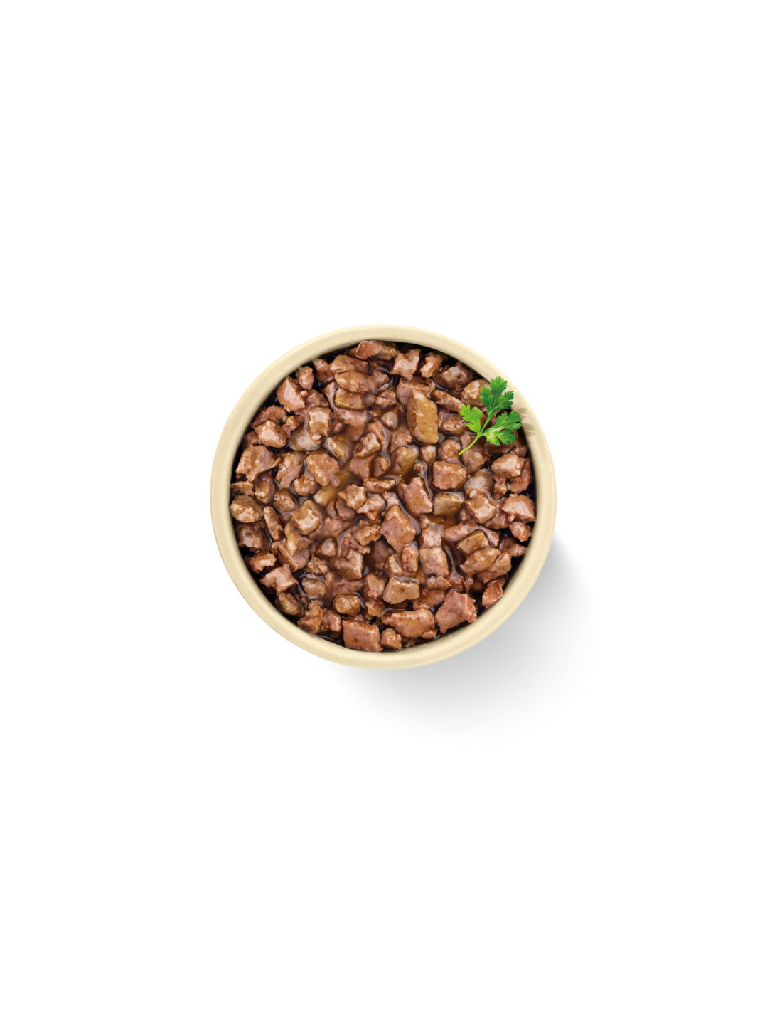 To nasza odpowiedź na naturalne potrzeby kota. Zamiast jednolitych, sztucznie formowanych kawałków, nasza karma ma strukturę delikatnie poszarpanego mięsa. Taka forma jest dla kota bardziej interesująca, zachęca do gryzienia i sprawia, że posiłek staje się prawdziwą ucztą, a nie tylko sposobem na zaspokojenie głodu. To doświadczenie bliższe naturalnemu sposobowi odżywiania.