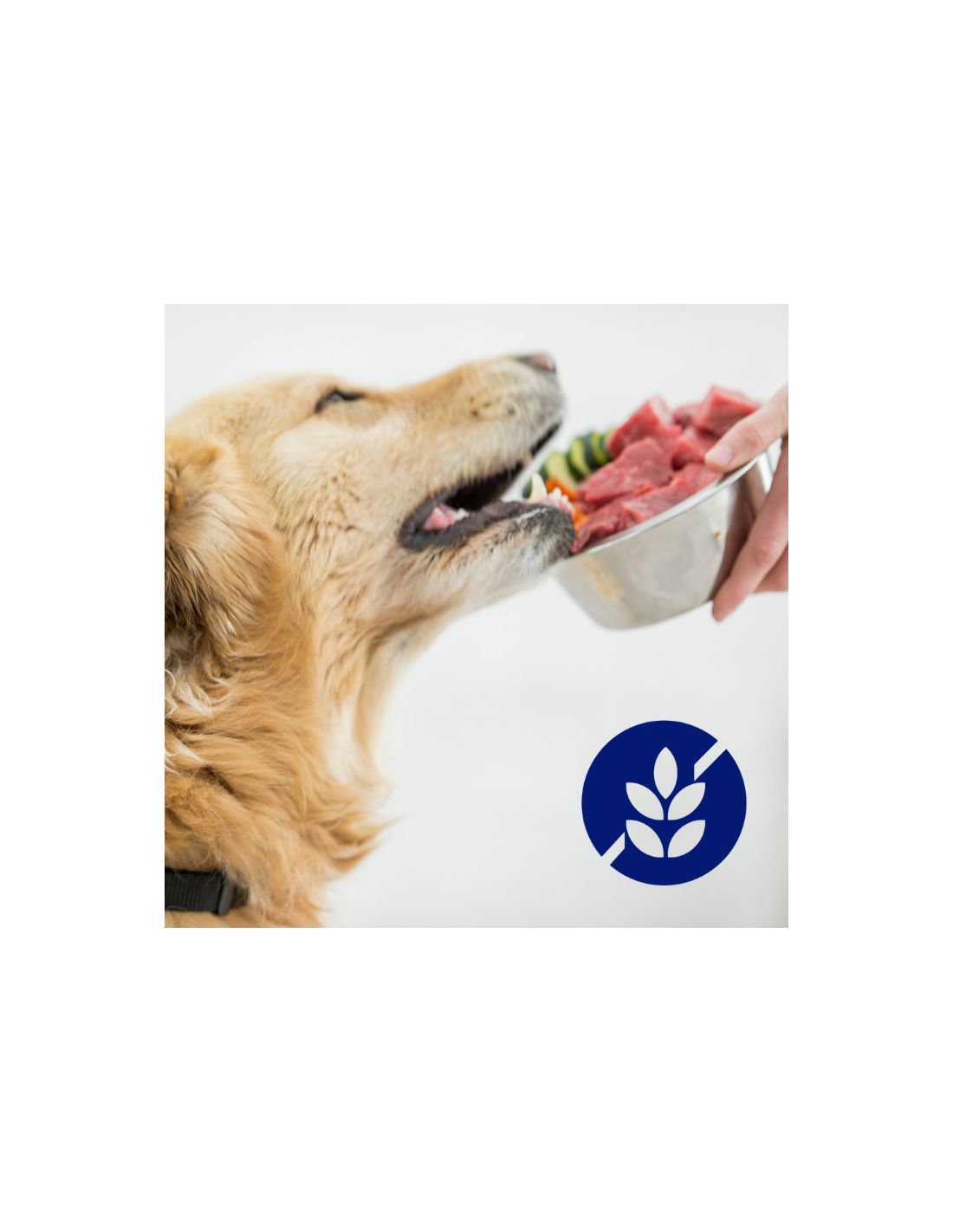 Nasza BEZZBOŻOWA FORMUŁA to ukłon w stronę pierwotnych potrzeb psa. Eliminacja zbędnych wypełniaczy usuwa ryzyko niestrawności, ustępując miejsca zdrowej energii.
