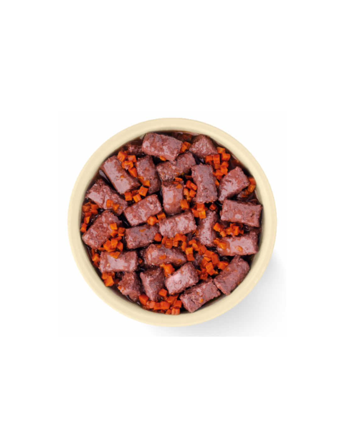 Dodatek MARCHEWKI pełni podwójną, ważną rolę: urozmaica smak i aktywnie wspiera zdrowie. Jako naturalne źródło błonnika, dba o prawidłową pracę jelit, a zawartość beta-karotenu (prowitaminy A) wspiera organizm. To wartościowy, warzywny element, który doskonale uzupełnia bogatą w mięso dietę.