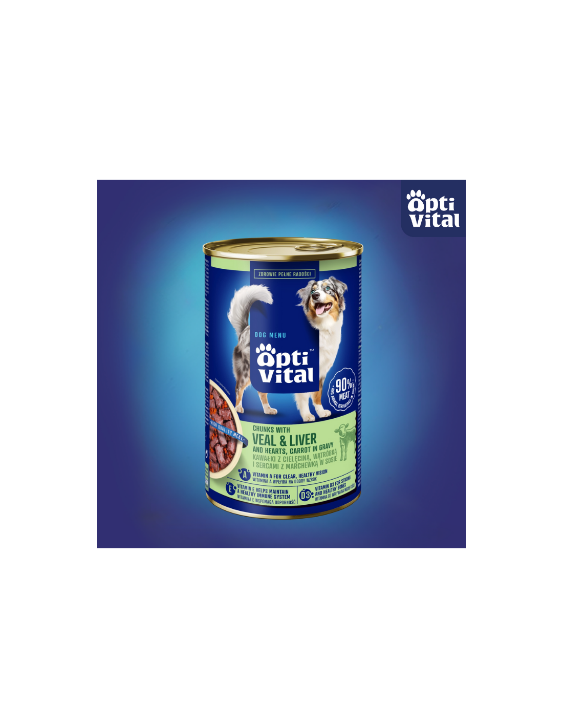 OptiVital to posiłek, który szanuje jego dziedzictwo. Każda puszka to obietnica jakości, którą Twój pies instynktownie wyczuje