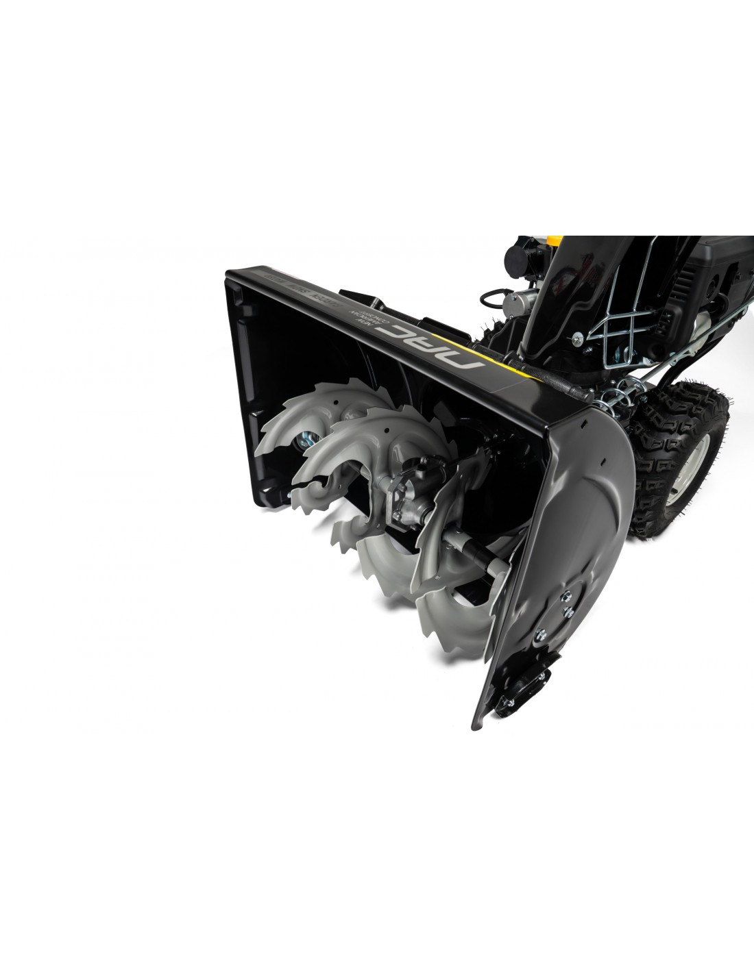 Zespół roboczy o szerokości 66 cm i wysokości wlotu 51 cm skutecznie zbiera biały puch, a stalowy wirnik wyrzuca go na odległość do 11 metrów.
