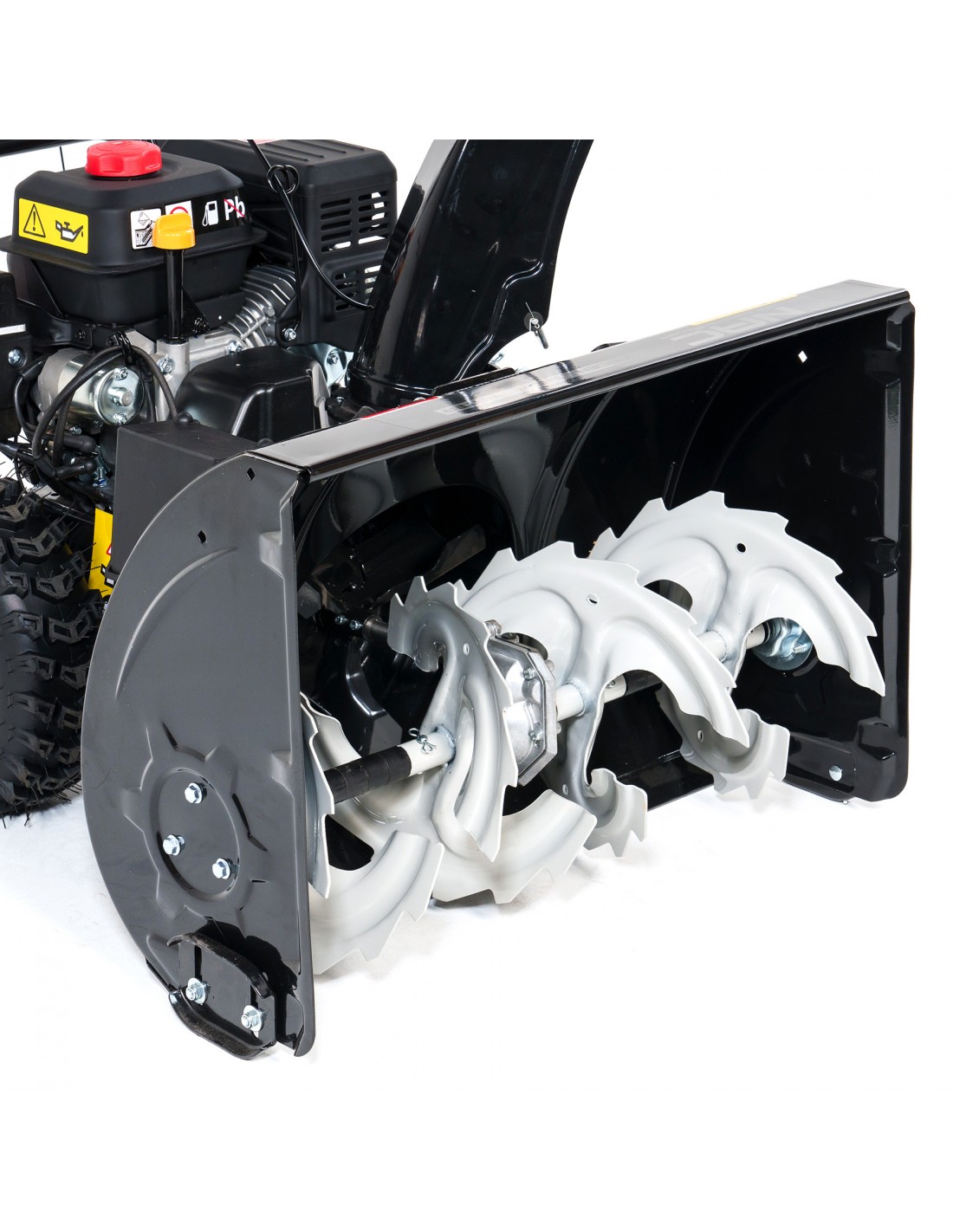 Zespół roboczy o szerokości 76 cm i wysokości wlotu 51 cm skutecznie zbiera biały puch, a stalowy wirnik wyrzuca go na odległość do 11 metrów. Nie musisz martwić się o miejsce lądowania usuniętego śniegu.
