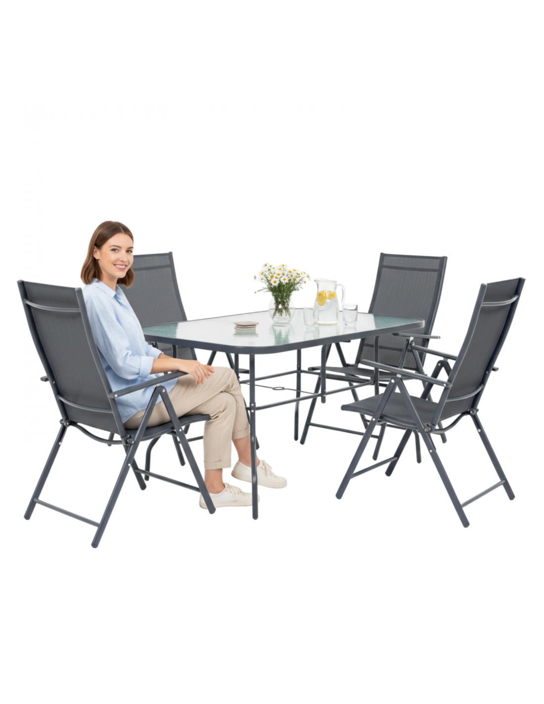 Komplet mebli ogrodowych dla 4 osób - stół obiadowy Tampa + 4 fotele wielopozycyjne Daytona Meven
