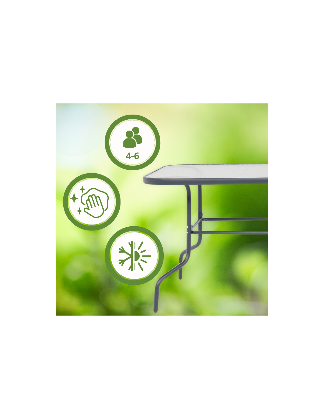 - 1x Stół ogrodowy z blatem z hartowanego szkła MEVEN Tampa, 90x150 cm