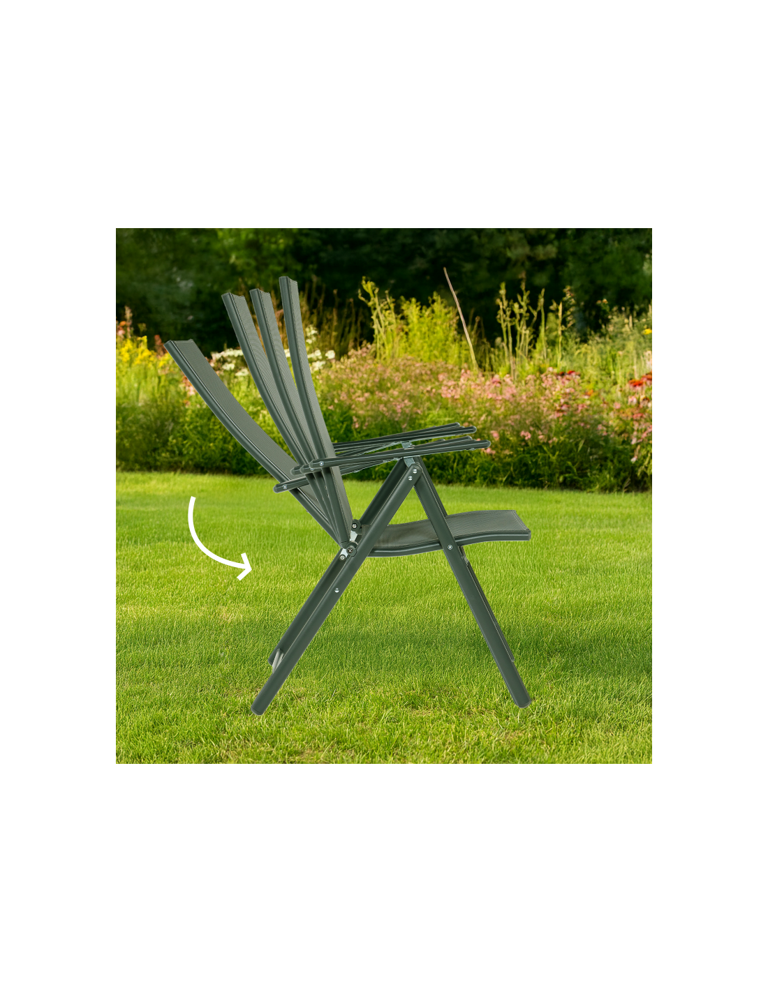 Zestaw wielopozycyjnych foteli Daytona MEVEN w eleganckiej szarości to Twoja przepustka do beztroskiego relaksu na świeżym powietrzu.