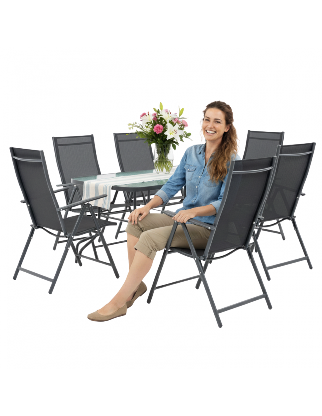 Komplet mebli ogrodowych dla 6 osób - stół obiadowy Tampa + 6 foteli wielopozycyjne Daytona Meven