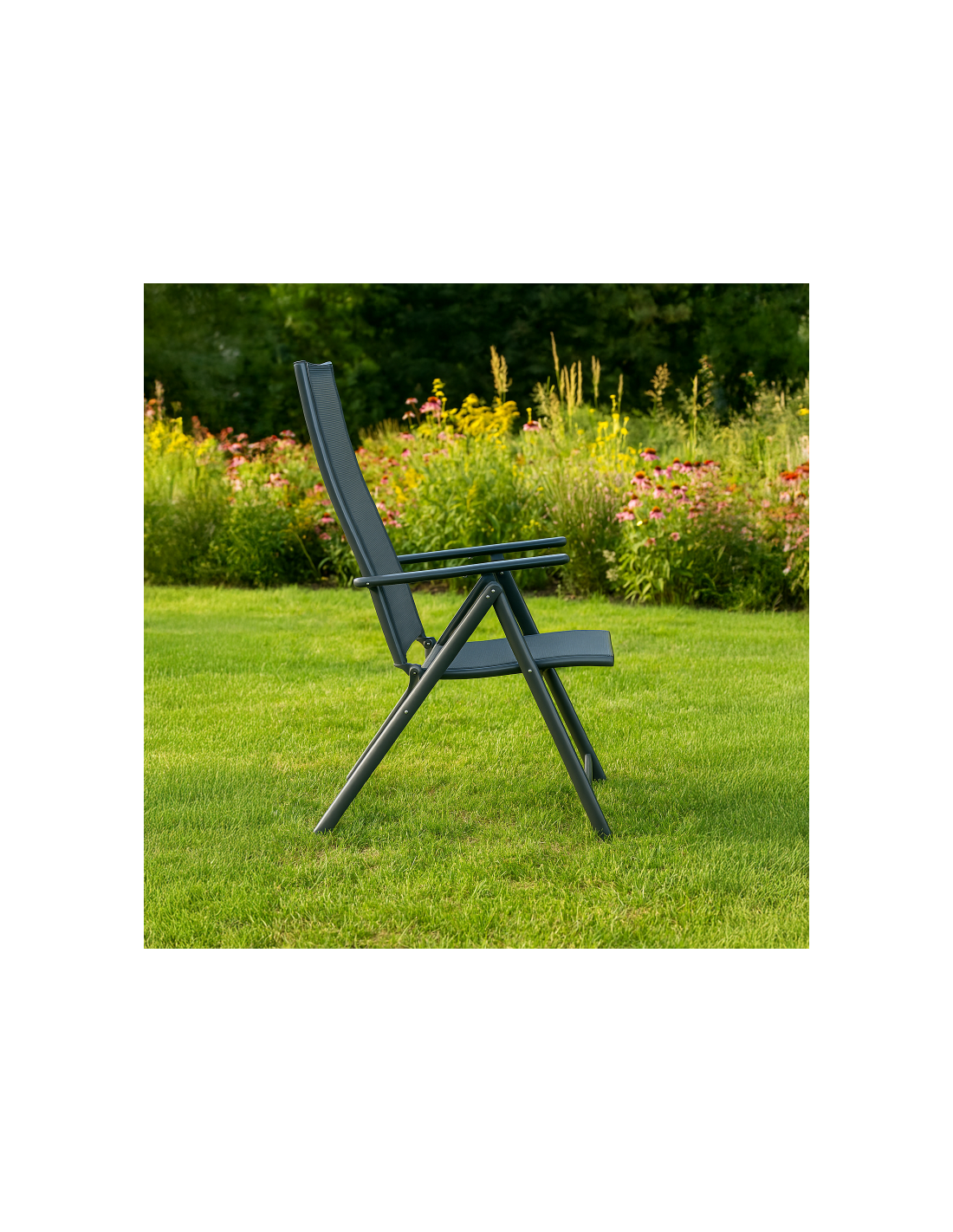 ❇️ Regulowane oparcie razem z wygodnymi podłokietnikami sprawiają, że nawet wielogodzinny wypoczynek na zewnątrz staje się czystą przyjemnością.