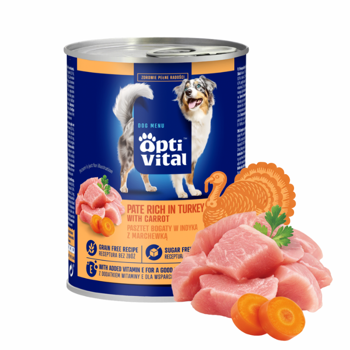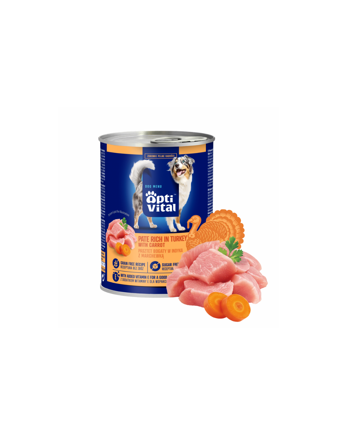 OptiVital - Pasztet z kurczakiem, bogaty w indyka z marchewką dla dorosłych psów, 400g
