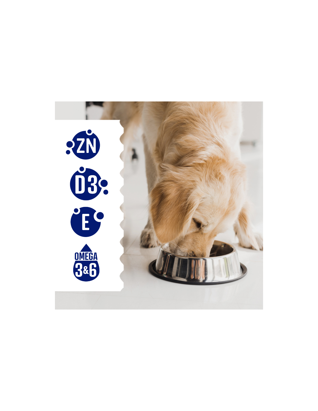 ➡️ Cynk, kwasy Omega 3 i 6 zapewniają zdrową i lśniącą sierść.