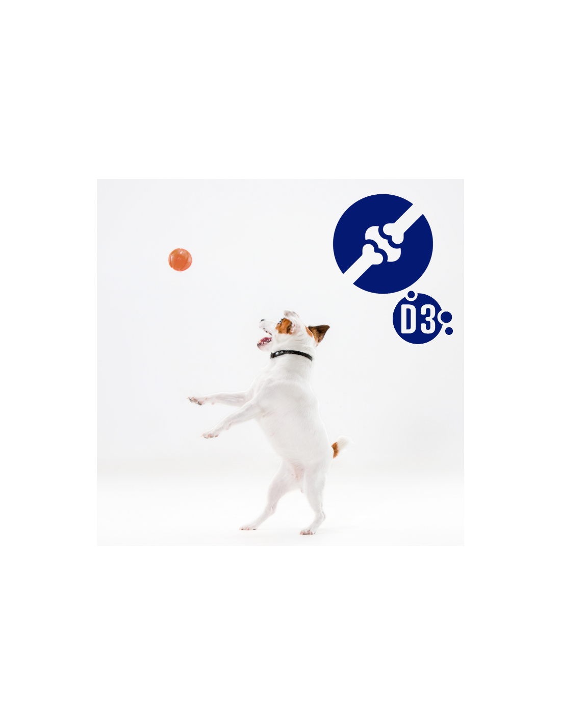 WITAMINA D3 to kluczowy składnik, który mistrzowsko zarządza gospodarką wapniowo-fosforową w organizmie. W ten sposób aktywnie wspiera budowę gęstych, mocnych kości i twardych zębów – fundamentu, który daje moc do dynamicznego skoku i pewnego chwytu.