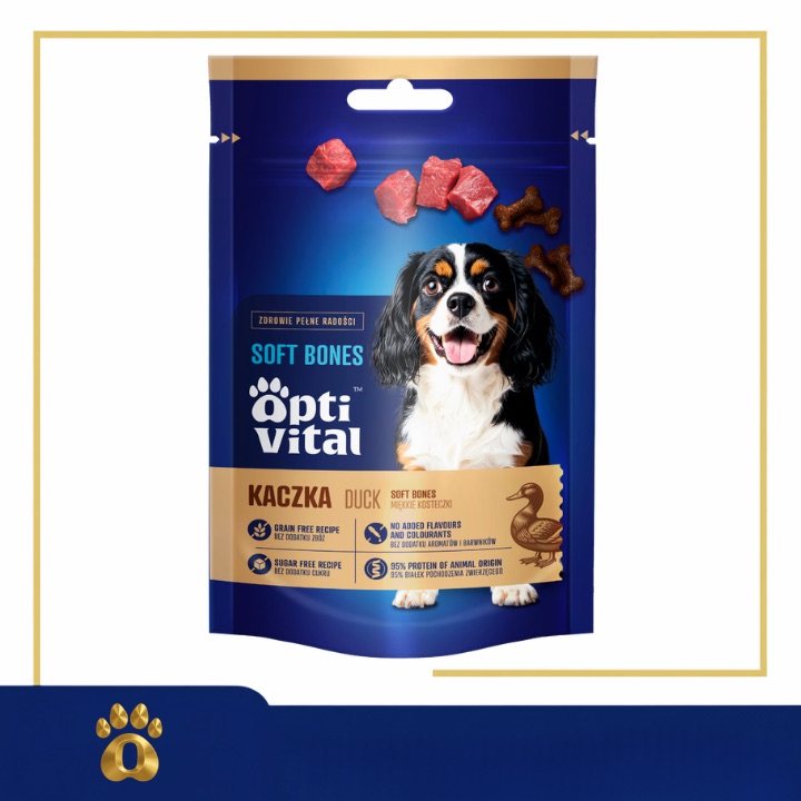 Kaczka to mięso cenione za swój specyficzny, kuszący aromat i niebanalny smak. Nawet psy, które bywają wybredne ("niejadki"), często reagują entuzjastycznie na ten rodzaj białka. To sprawia, że kosteczki OptiVital są świetnym sposobem na przemycenie dodatkowej energii lub nagrodzenie psa w wyjątkowy sposób.