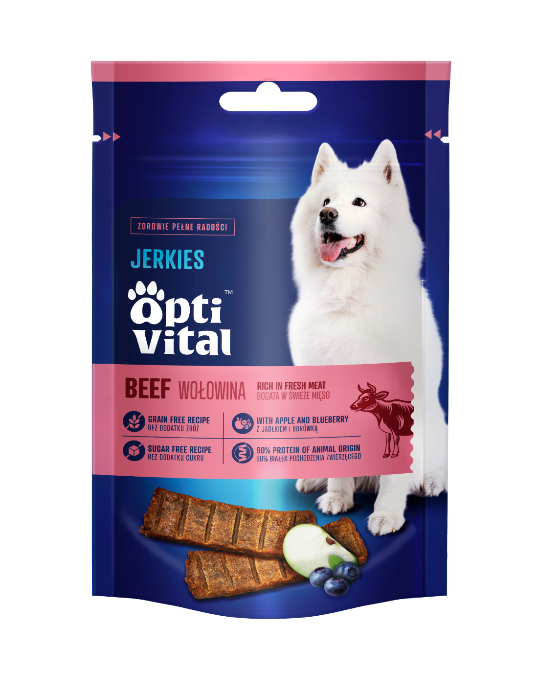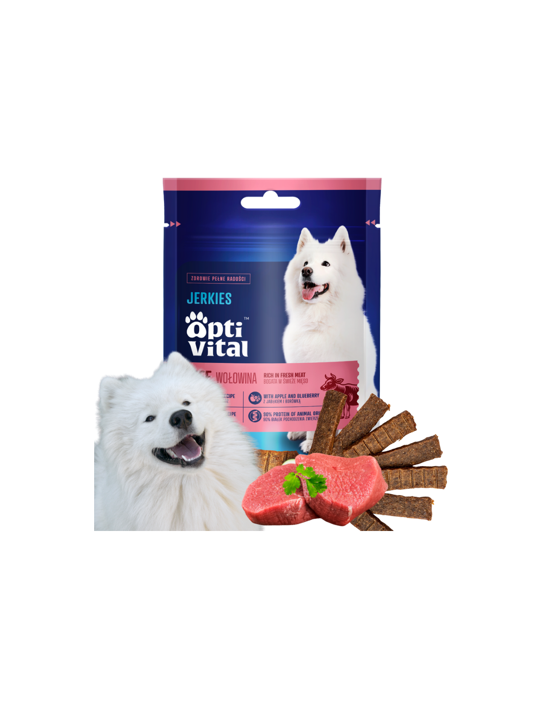 Przekąska dla psa OptiVital mięsne filety bogate w wołowinę 80 g