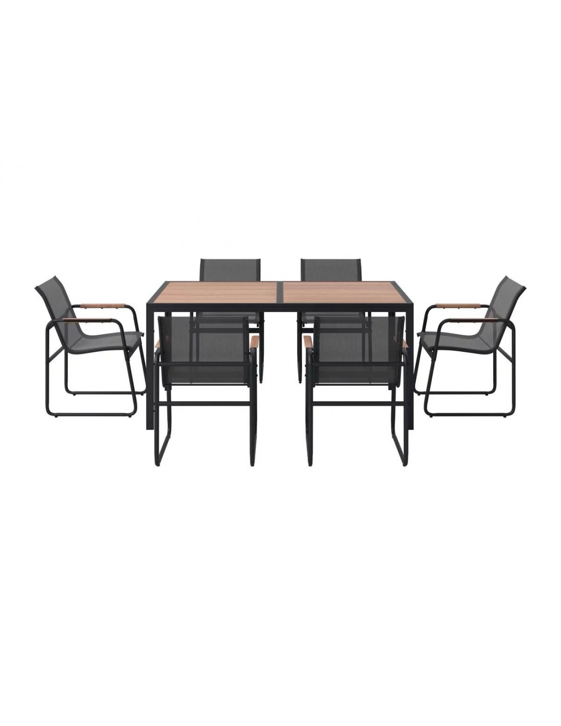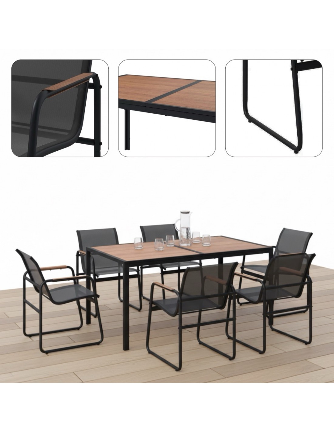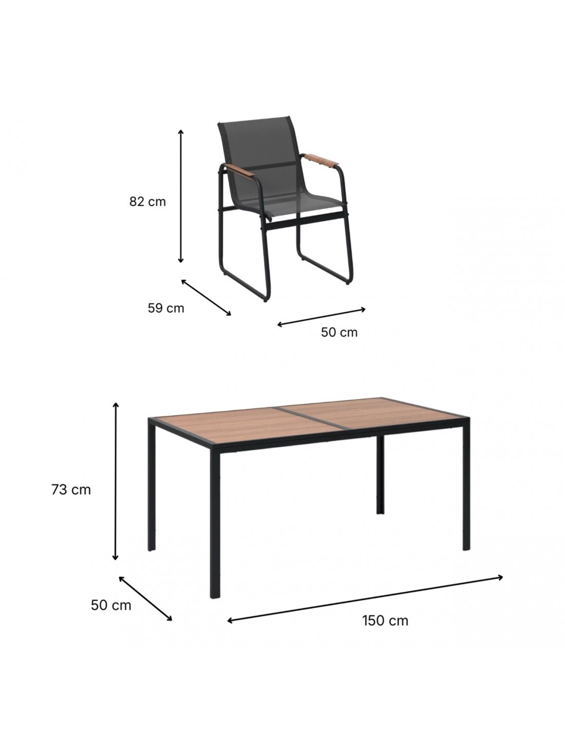 Blat z kompozytu WPC i podłokietniki heat transfer do złudzenia przypominają naturalne deski, a konstrukcja ze stali malowanej proszkowo zapewnia im pancerną odporność na rdzę.