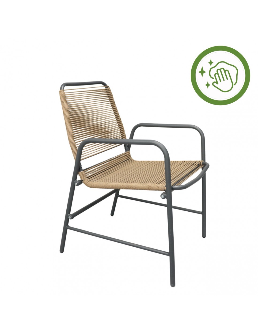 - Kolorystyka: stelaż w odcieniu grafitowym, plecionka w kolorze naturalnym