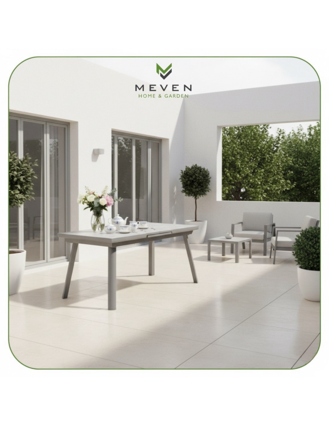 ✅ Stwórz luksusowy i spójny zestaw tarasowy, łącząc stół z dedykowanymi krzesłami Grenada lub Denia, które idealnie dopełniają jego nowoczesny design.
