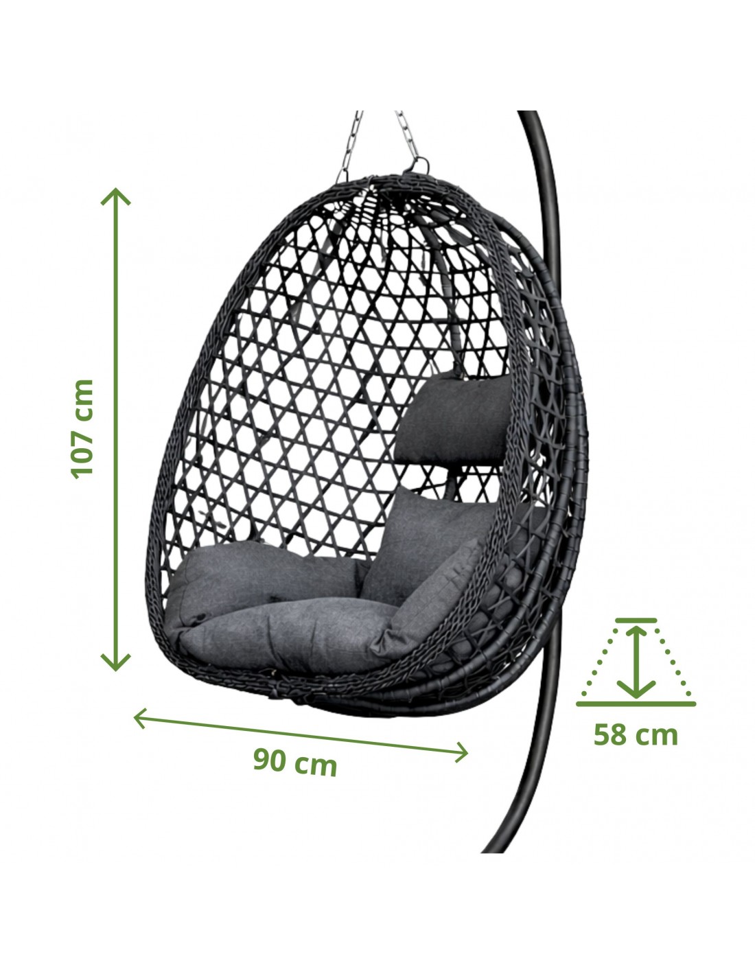 Wymiary siedziska: 90 × 58 × 107 cm