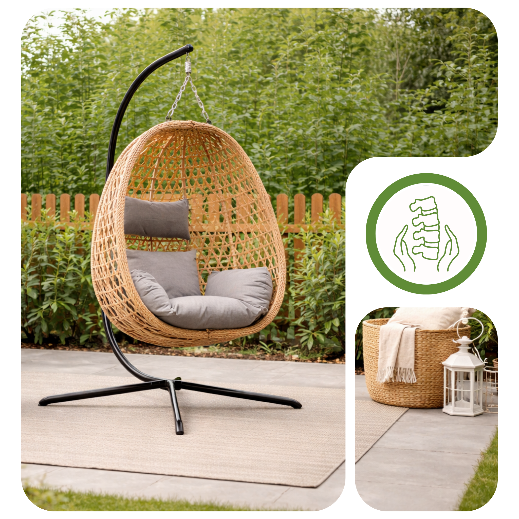 Przemyślany kształt kosza naturalnie odciąża Twoje plecy i dba o prawidłową postawę podczas każdej minuty relaksu. Dzięki gęstemu wypełnieniu poduszek unikasz kłopotliwego efektu zapadania się, co gwarantuje stabilne wsparcie kręgosłupa i natychmiastowe rozluźnienie spiętych mięśni. Delikatne kołysanie dopełnia całości, zmieniając zwykłą chwilę na tarasie w regenerujący rytuał dla Twojego zdrowia i doskonałego samopoczucia po całym dniu pracy.