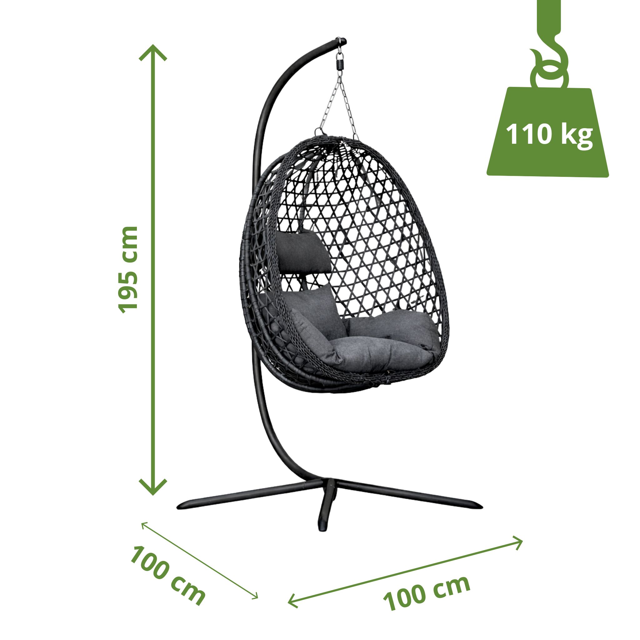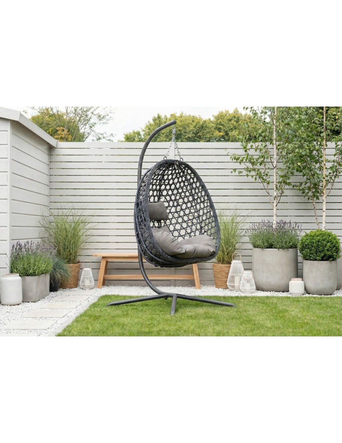 Fotel wiszący ogrodowy MEVEN AURA z technorattanu, grafitowy