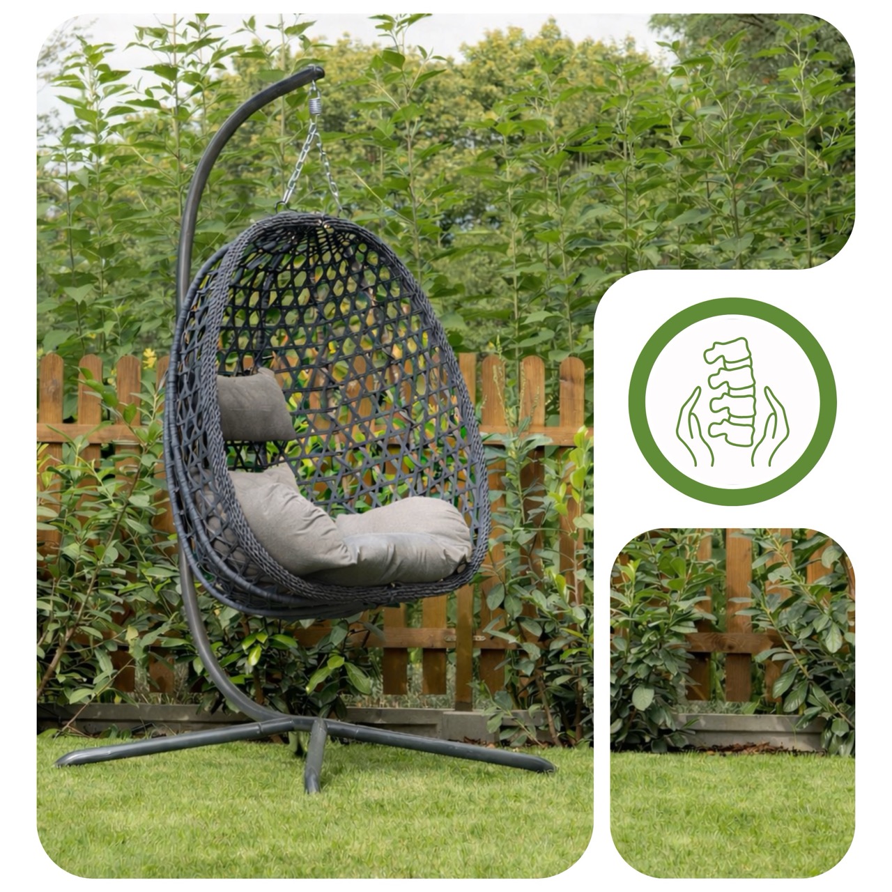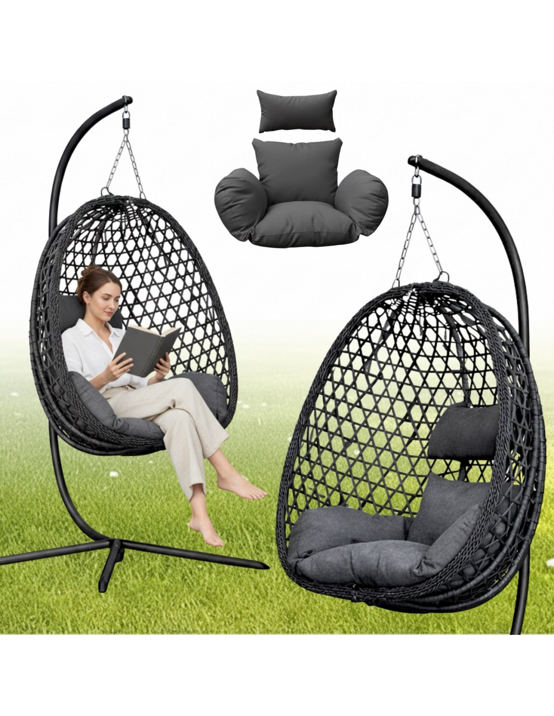 Przemyślany kształt kosza naturalnie odciąża Twoje plecy i dba o prawidłową postawę podczas każdej minuty relaksu. Dzięki gęstemu wypełnieniu poduszek unikasz kłopotliwego efektu zapadania się, co gwarantuje stabilne wsparcie kręgosłupa i natychmiastowe rozluźnienie spiętych mięśni. Delikatne kołysanie dopełnia całości, zmieniając zwykłą chwilę na tarasie w regenerujący rytuał dla Twojego zdrowia i doskonałego samopoczucia po całym dniu pracy.