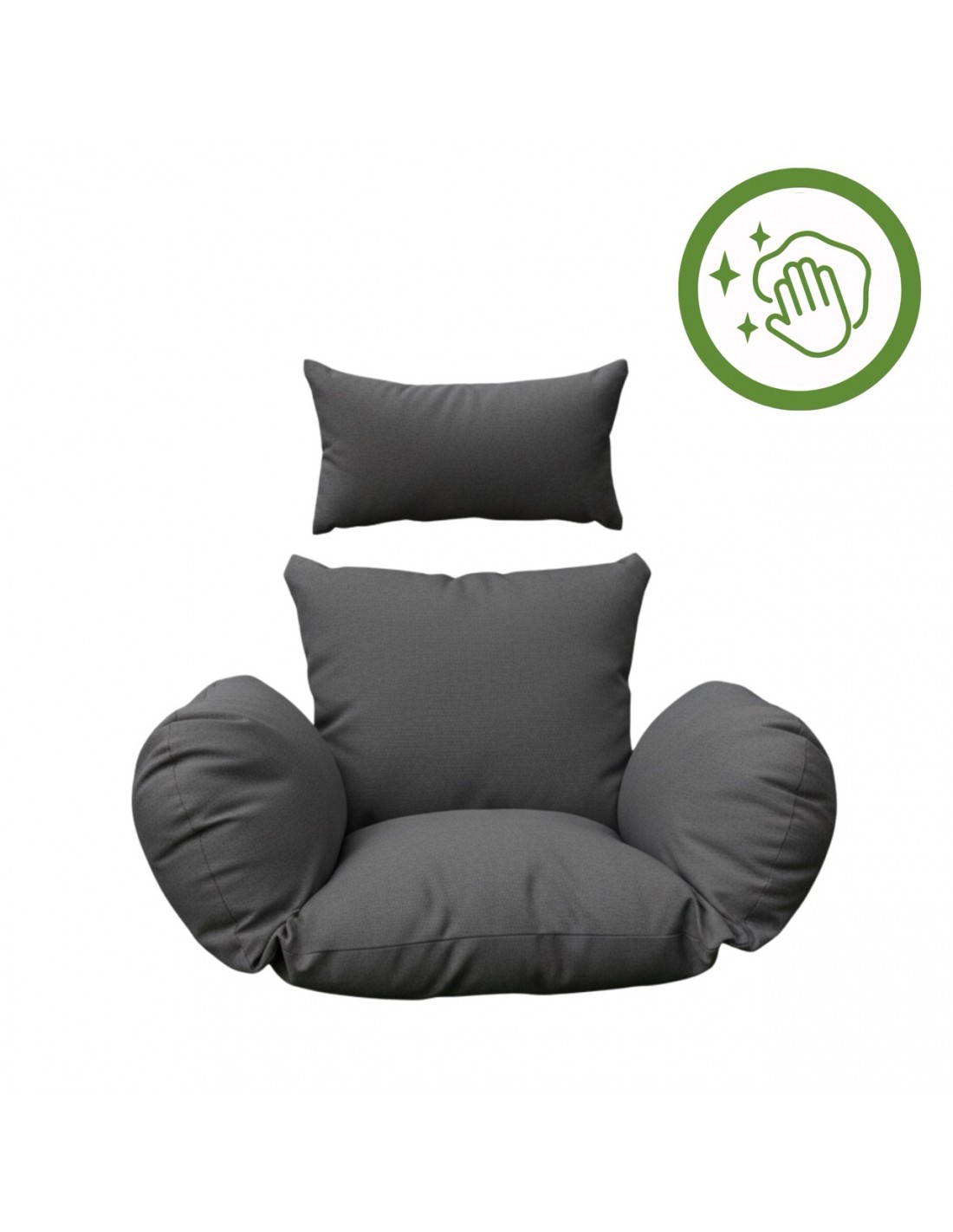 Zatop się w grubych poduszkach z zaawansowanej tkaniny poliestrowej, która zapewnia luksusowy odpoczynek i całkowitą odporność na blaknięcie. Dzięki hydrofobowej strukturze materiału wszelkie zabrudzenia oraz płyny zatrzymują się na powierzchni, co pozwala Ci usunąć je w kilka sekund za pomocą wilgotnej ściereczki lub zwykłej wody.