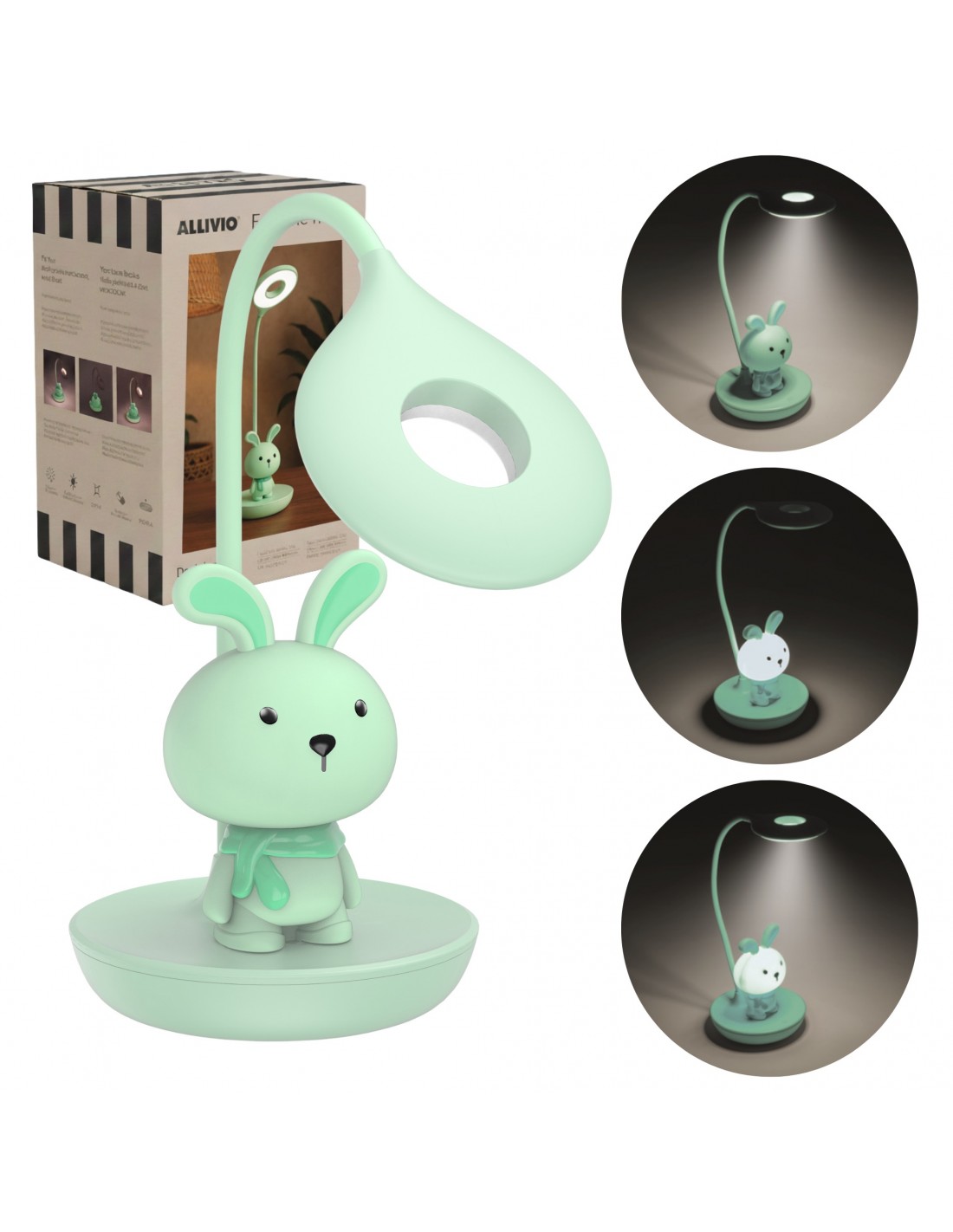 Elastyczna lampka biurkowa / nocna Zielony króliczek + USB