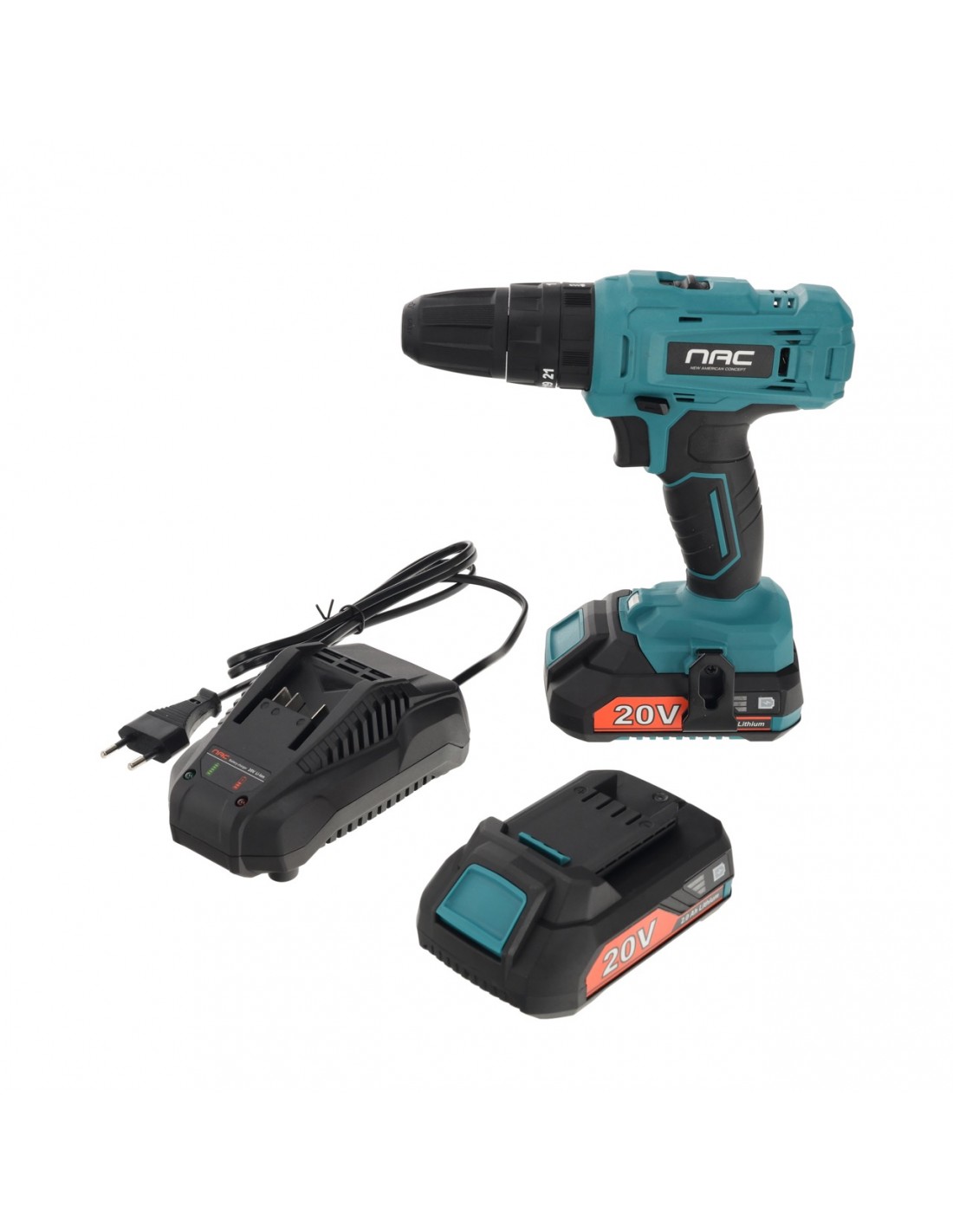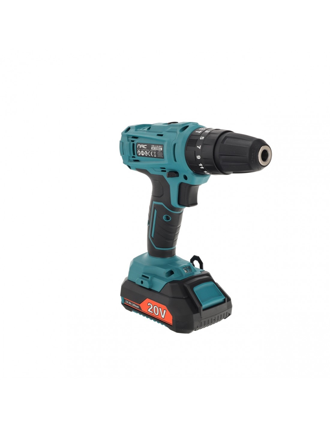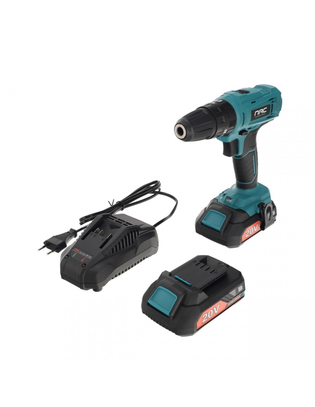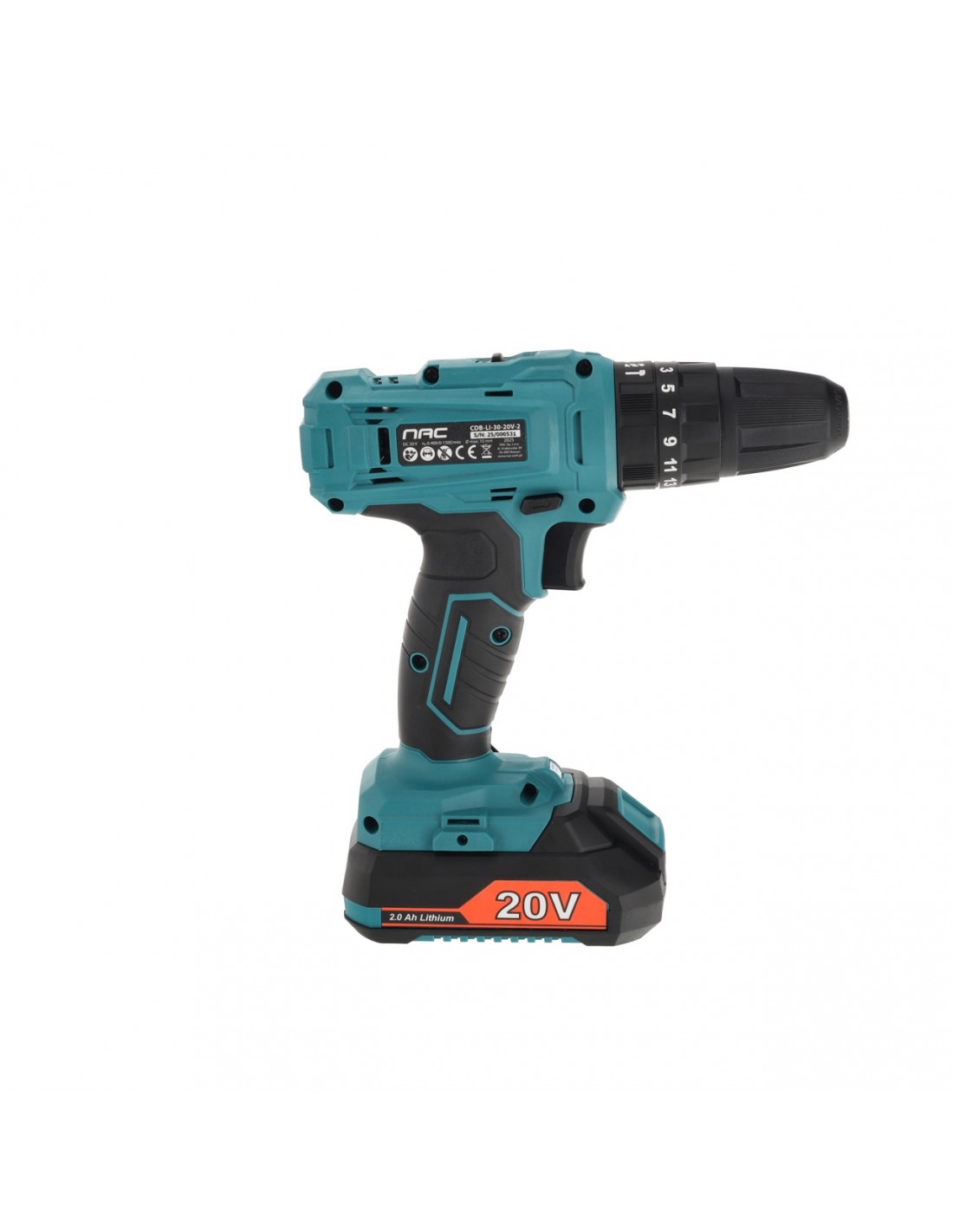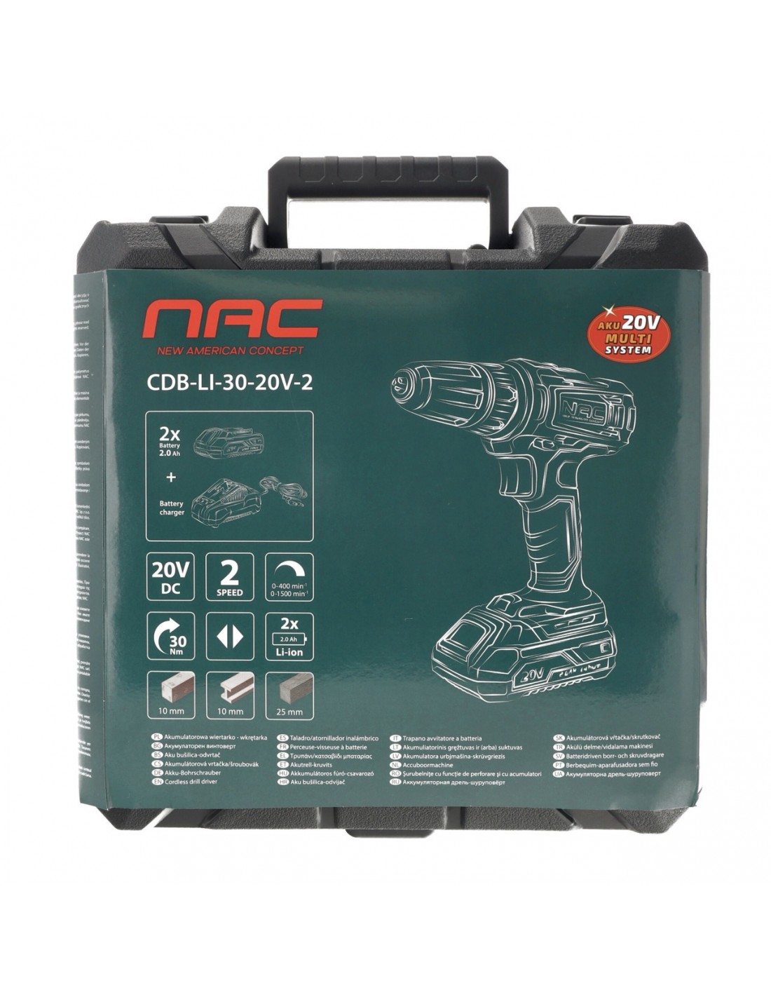 Wkrętarko-wiertarka z udarem 30 Nm + 2x bateria 2 Ah + ładowarka 2,4 A NAC CDB-LI-30-20V-2