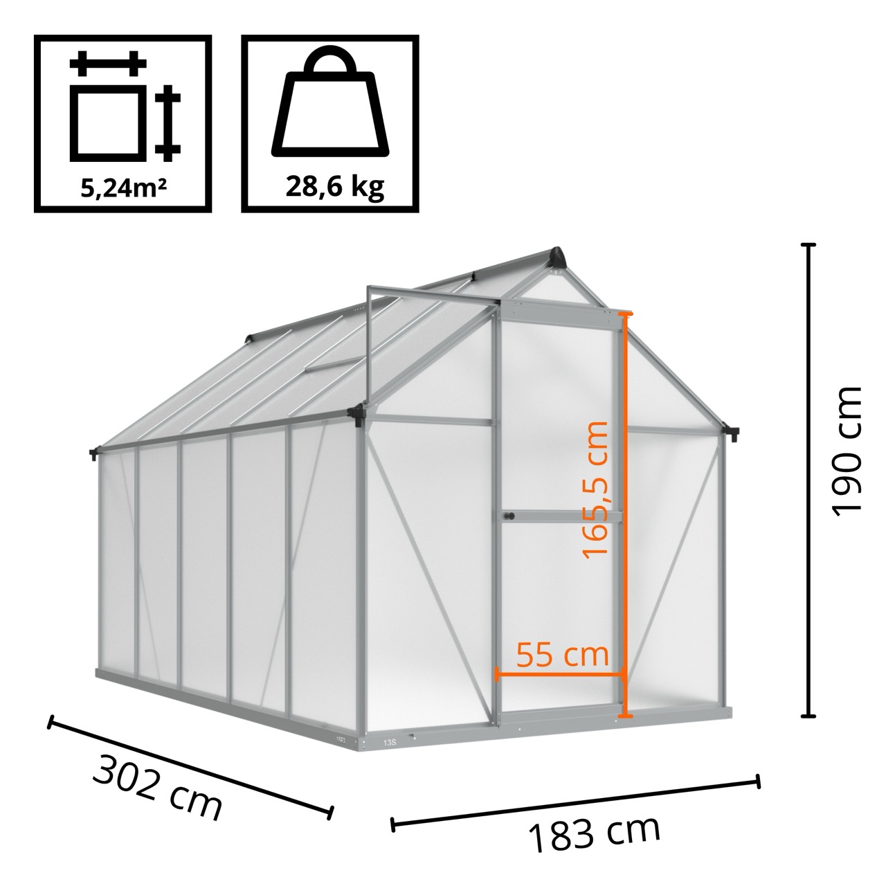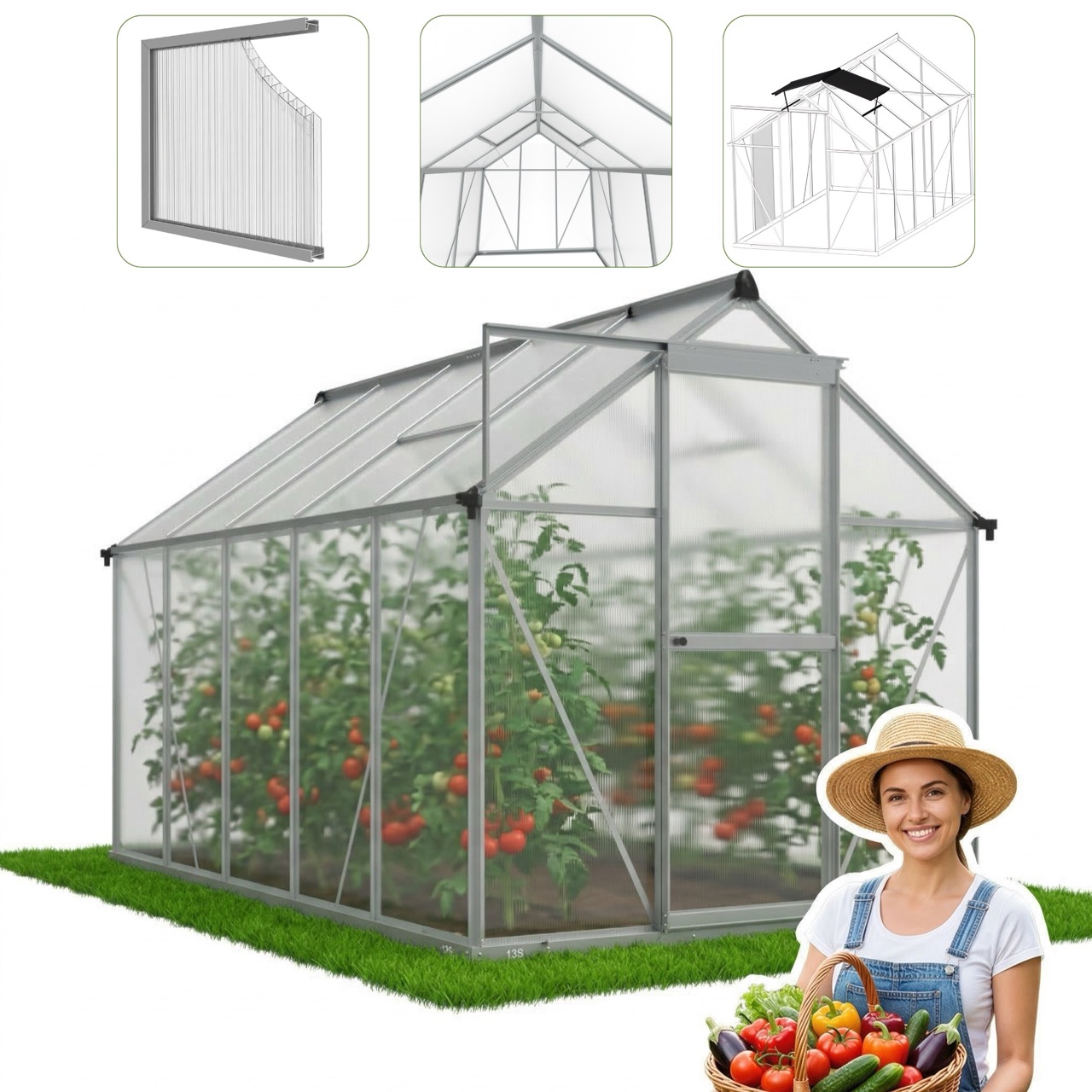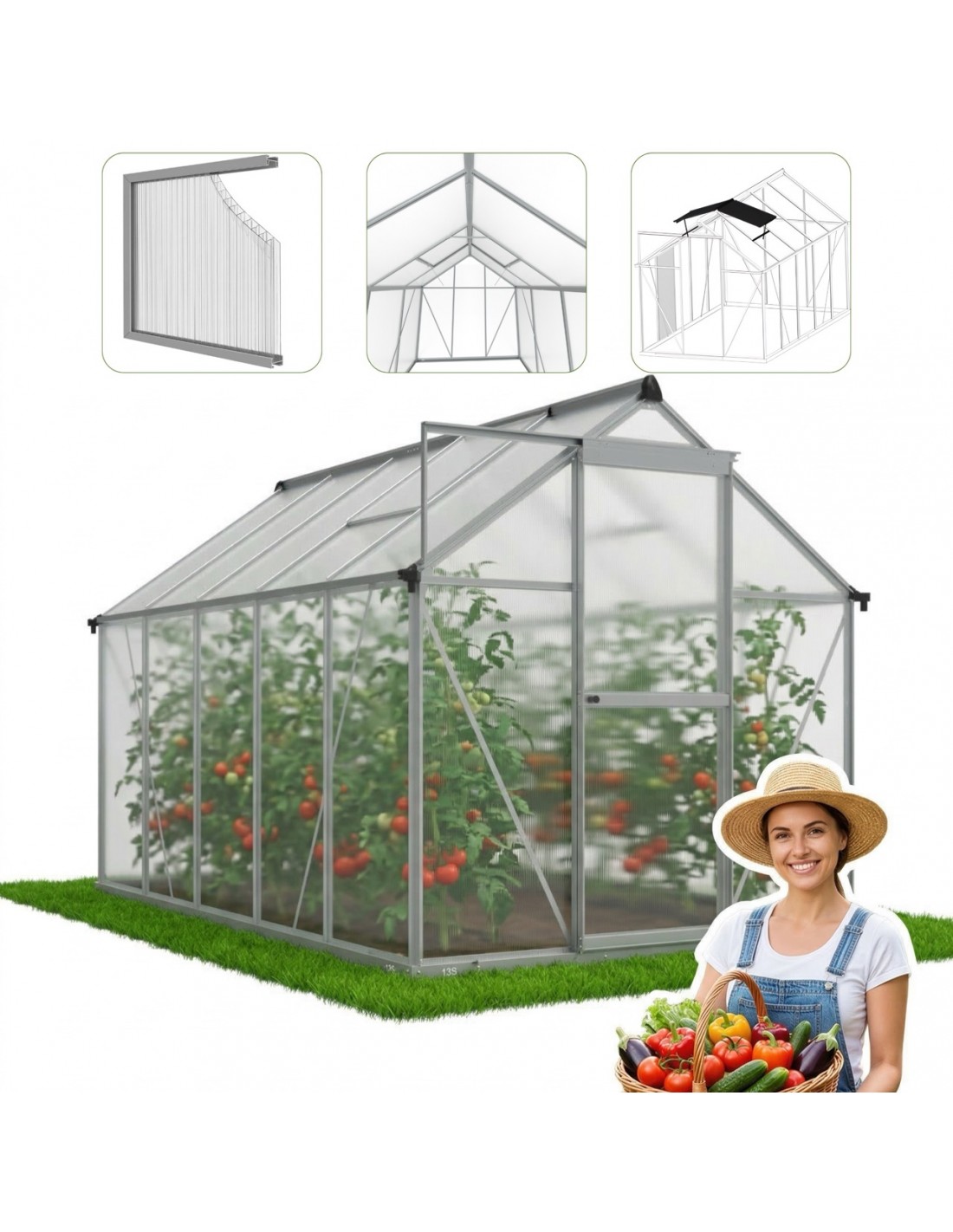 Duża szklarnia ogrodowa z poliwęglanu z oknami 361 cm x 183 cm 6,25m2