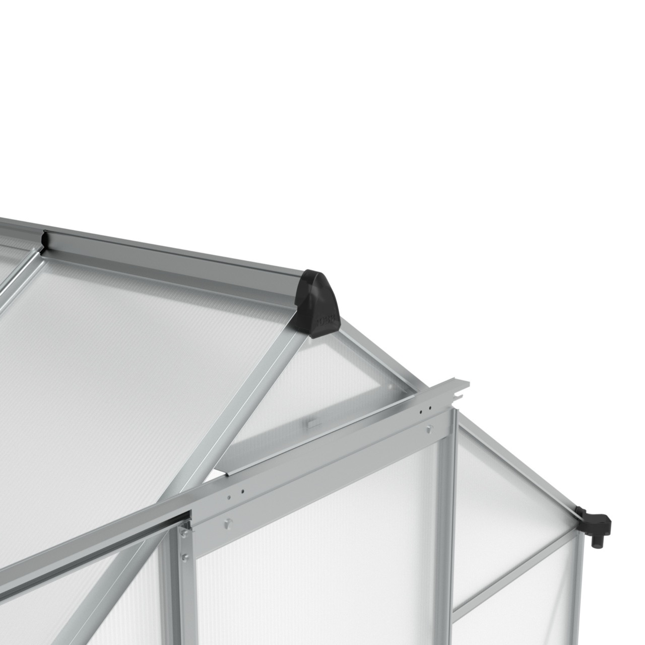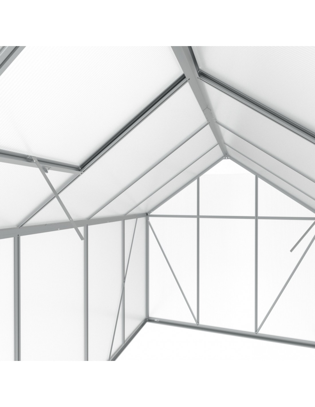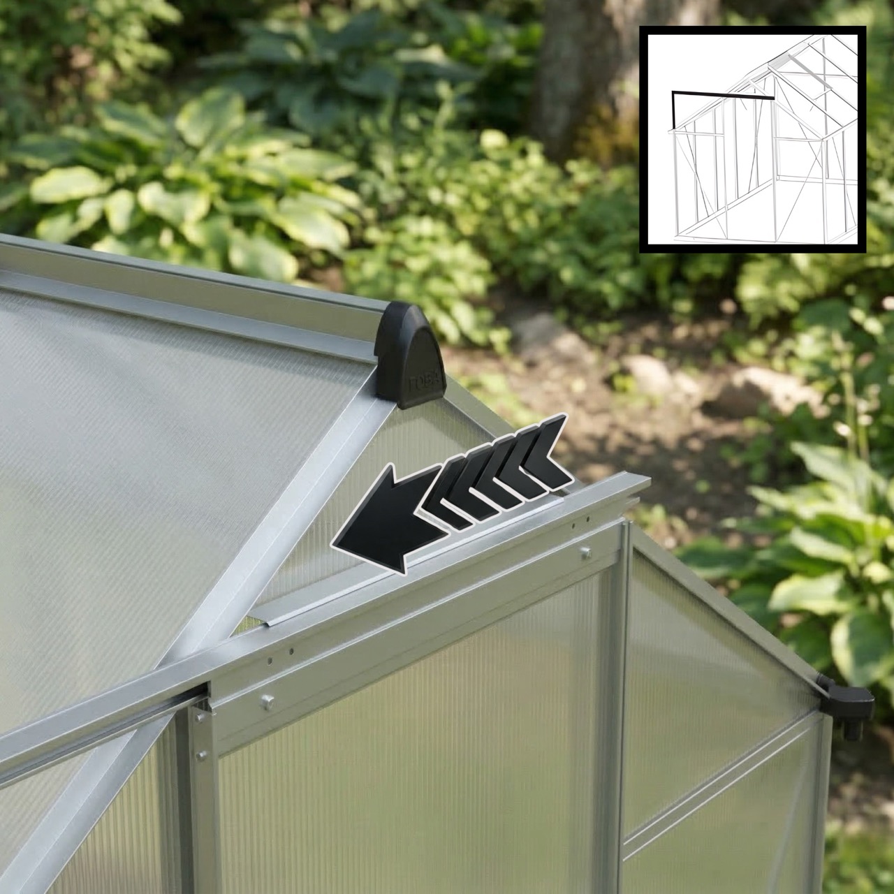 W dachu szklarni umieszczono uchylne okna, które dają Ci pełną kontrolę nad temperaturą. Dzięki nim szybko i łatwo wywietrzysz wnętrze, skutecznie chroniąc rośliny przed przegrzaniem w upalne dni. To prosty sposób na zapewnienie uprawom idealnych warunków do wzrostu.