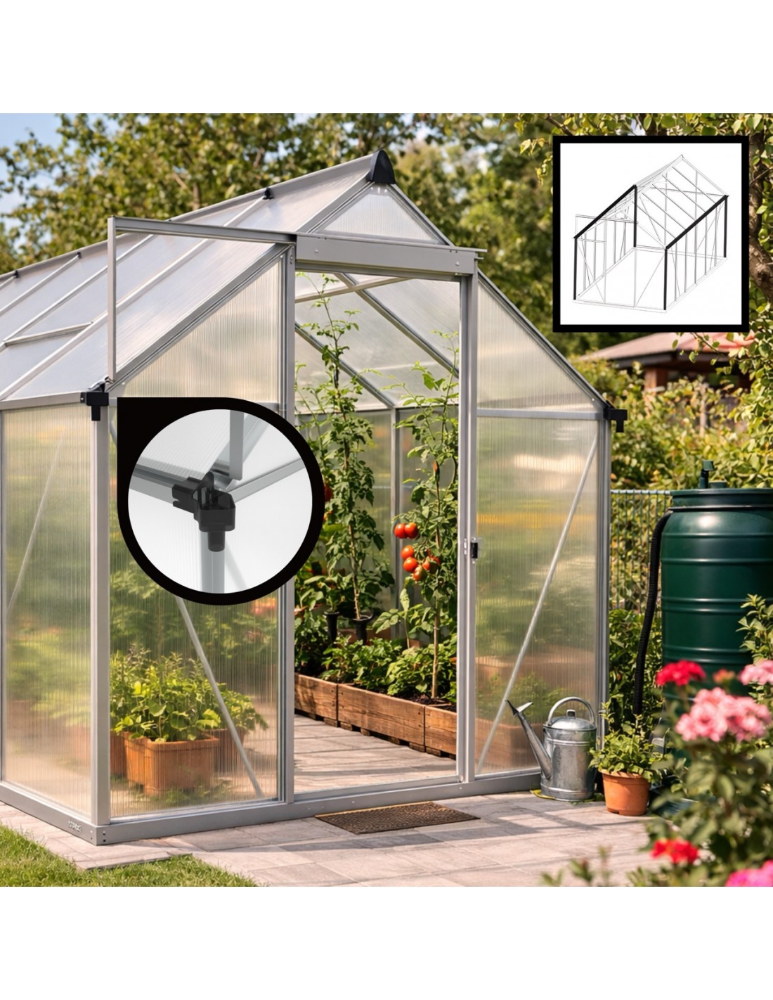 ✅ Zintegrowane rynny boczne: umożliwiają wygodne gromadzenie darmowej deszczówki, która jest najlepszym i najbardziej naturalnym sposobem podlewania roślin.