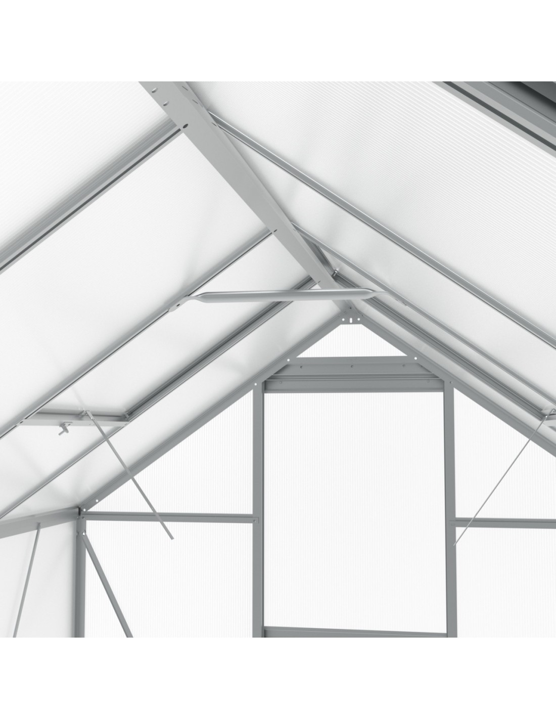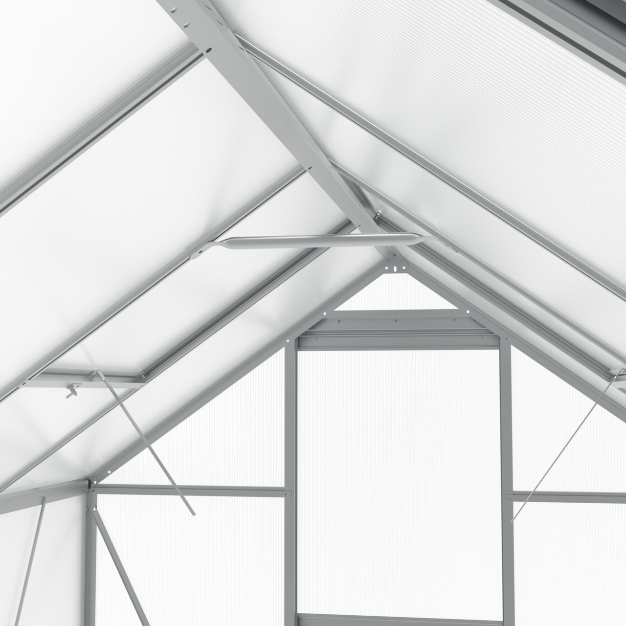 W dachu szklarni umieszczono uchylne okna, które dają Ci pełną kontrolę nad temperaturą. Dzięki nim szybko i łatwo wywietrzysz wnętrze, skutecznie chroniąc rośliny przed przegrzaniem w upalne dni. To prosty sposób na zapewnienie uprawom idealnych warunków do wzrostu.