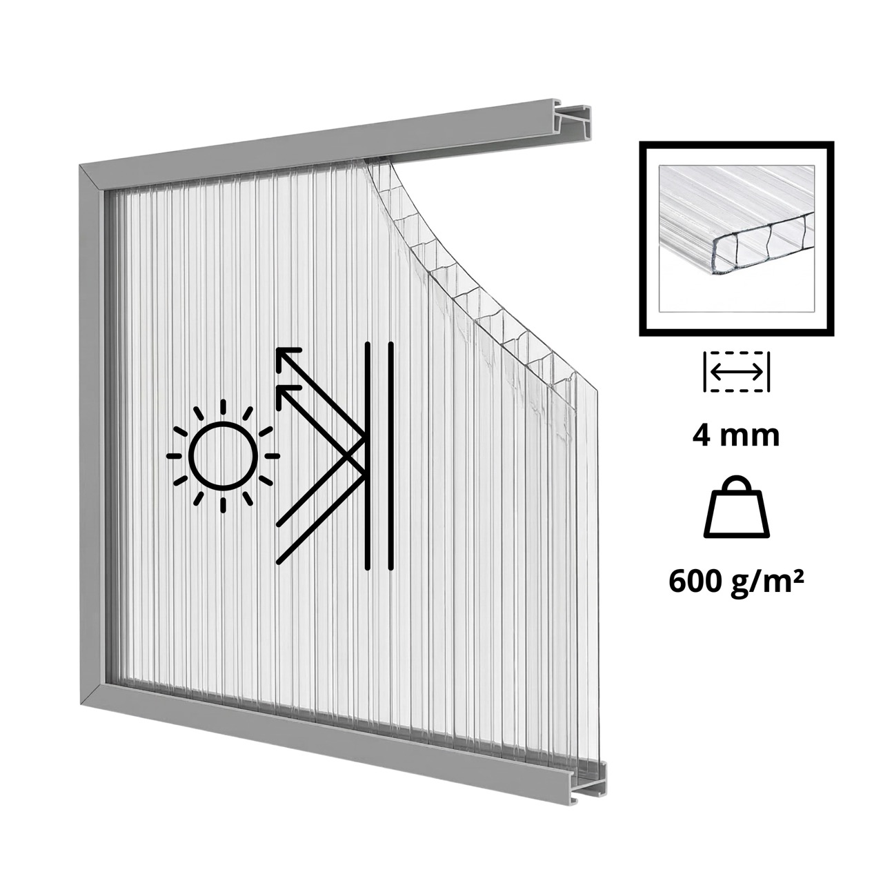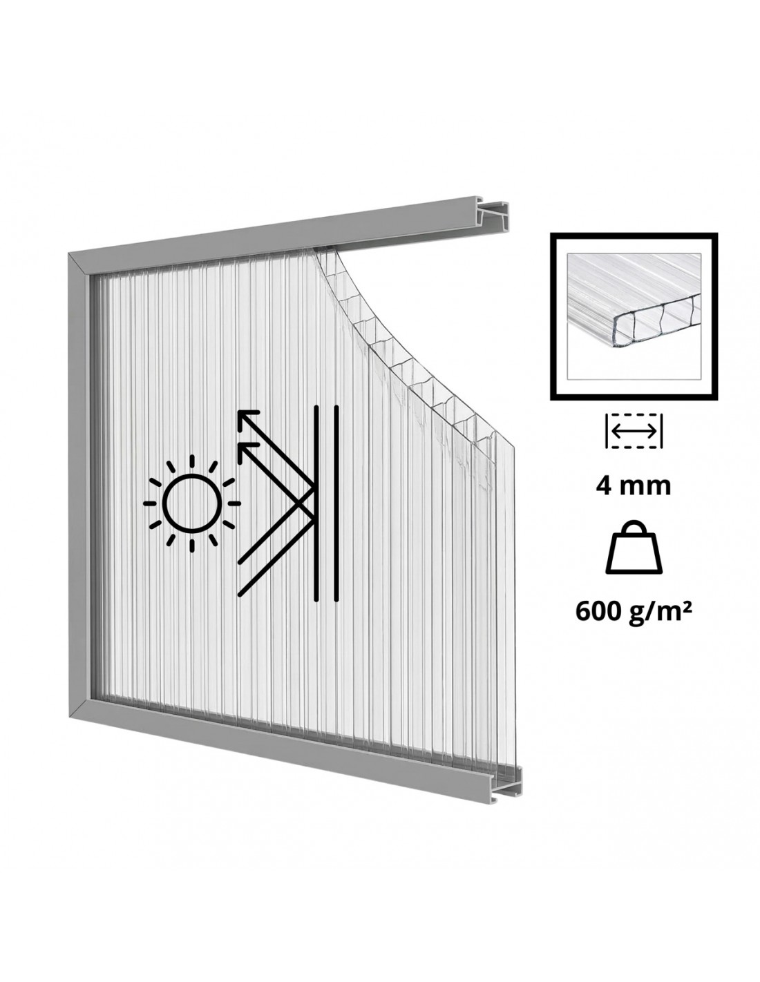 - Gramatura poliwęglanu: 600 g/m²