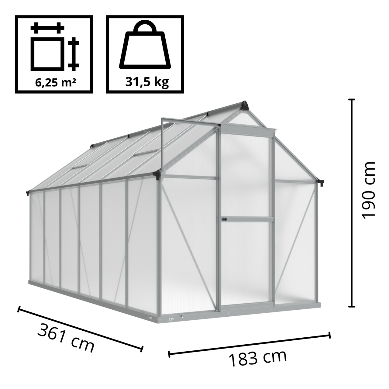 - Wymiary szklarni: 1830 x 3610 mm
