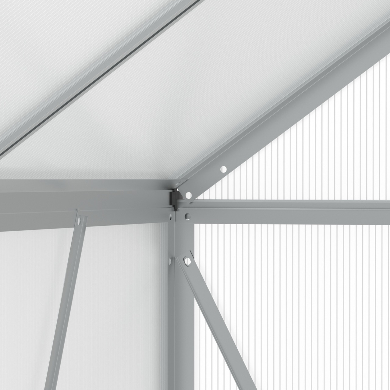 - Poszycie: panele z poliwęglanu komorowego