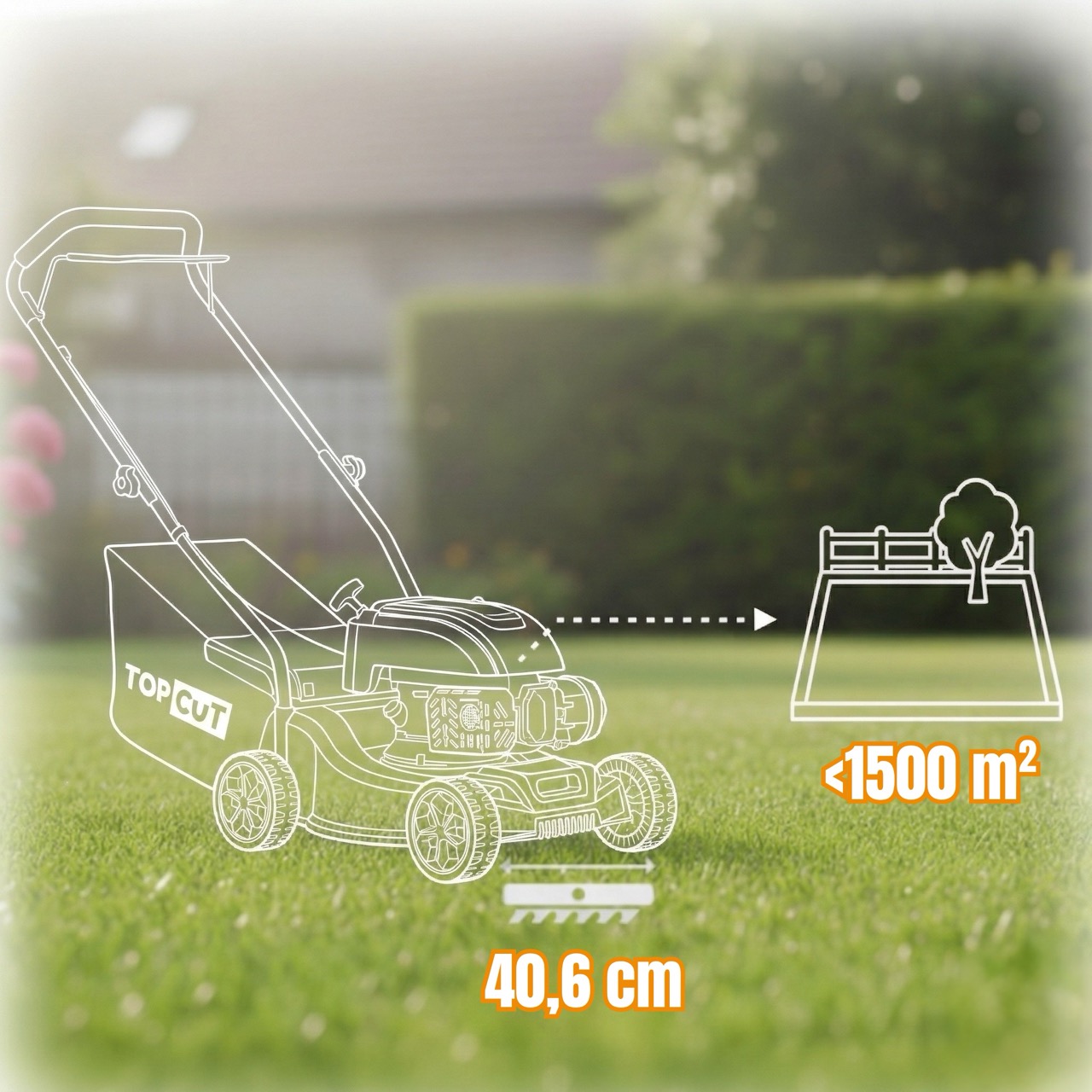 - Szerokość koszenia: 40,6 cm (idealna do manewrowania)