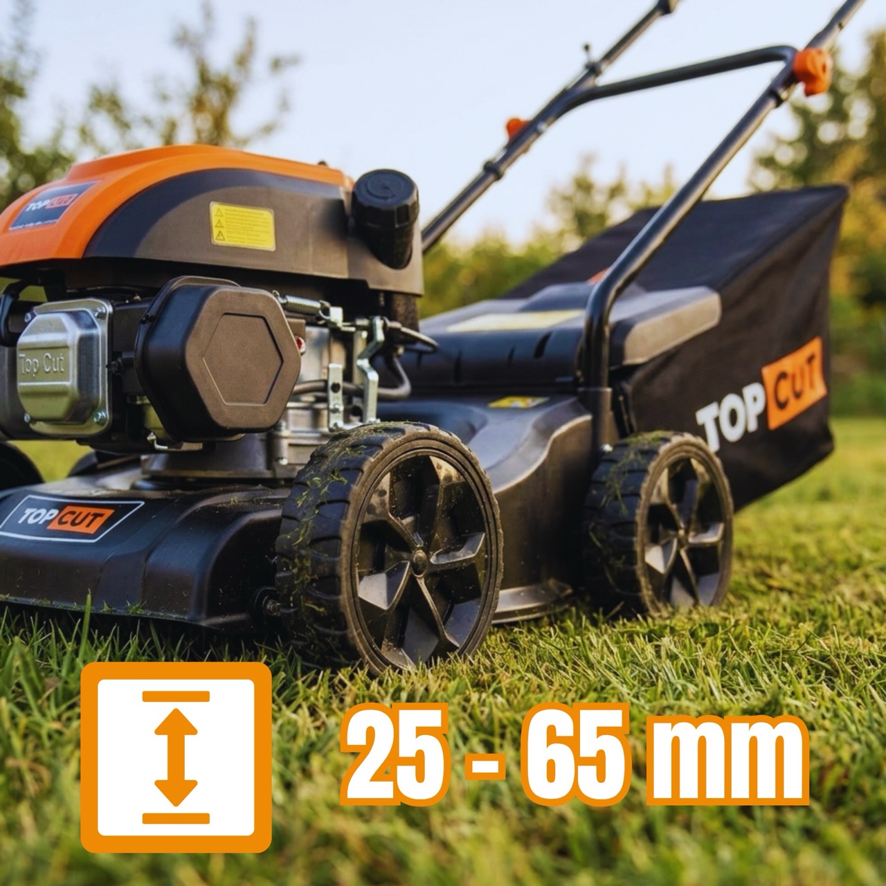 ➡️3-stopniowa regulacja wysokości: pełna kontrola nad wyglądem trawnika (25-65 mm) i możliwość dopasowania cięcia do aktualnych warunków.