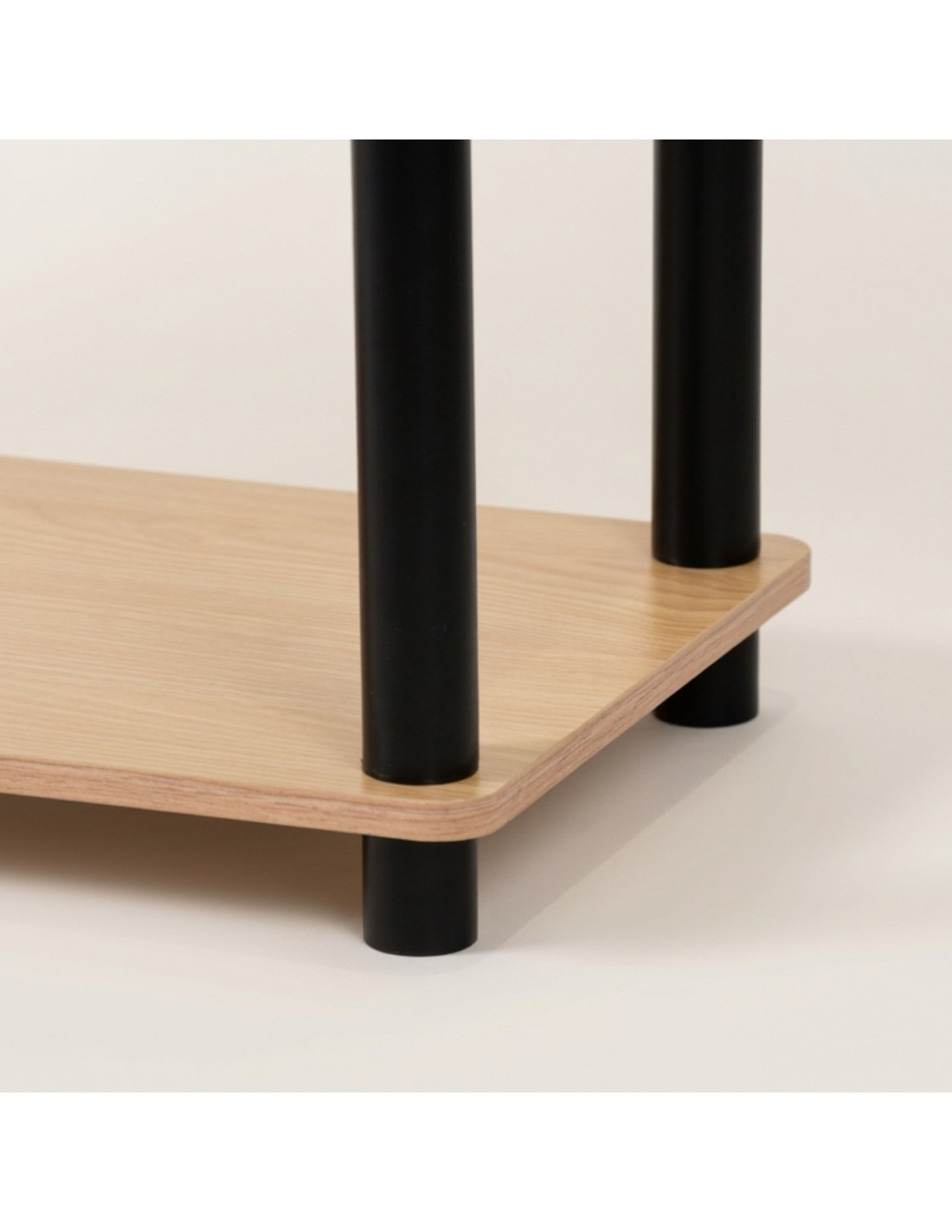 Ten regał to dopiero początek ☺️ Wszystkie meble z tej serii wykorzystują te same materiały: płytę MDF o grubości 1,2 cm oraz czarne rurki PVC. Możesz dokupować kolejne moduły bez obaw, że odcienie będą się „gryźć”. Budujesz spójną przestrzeń bez biegania po sklepach z próbkami drewna.