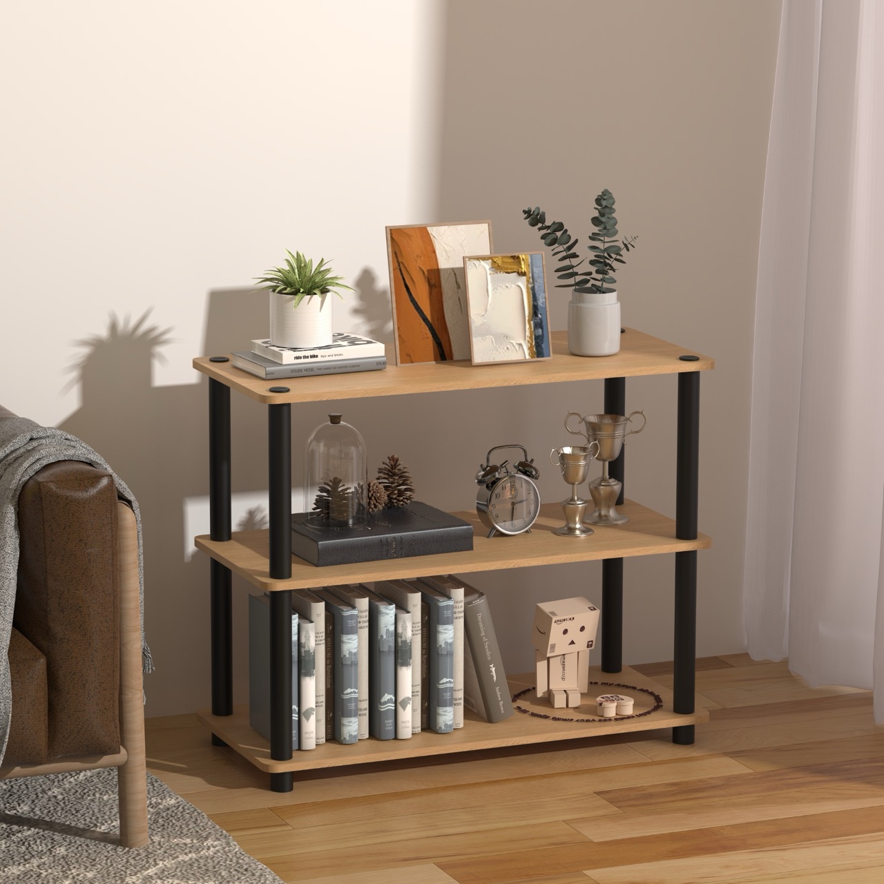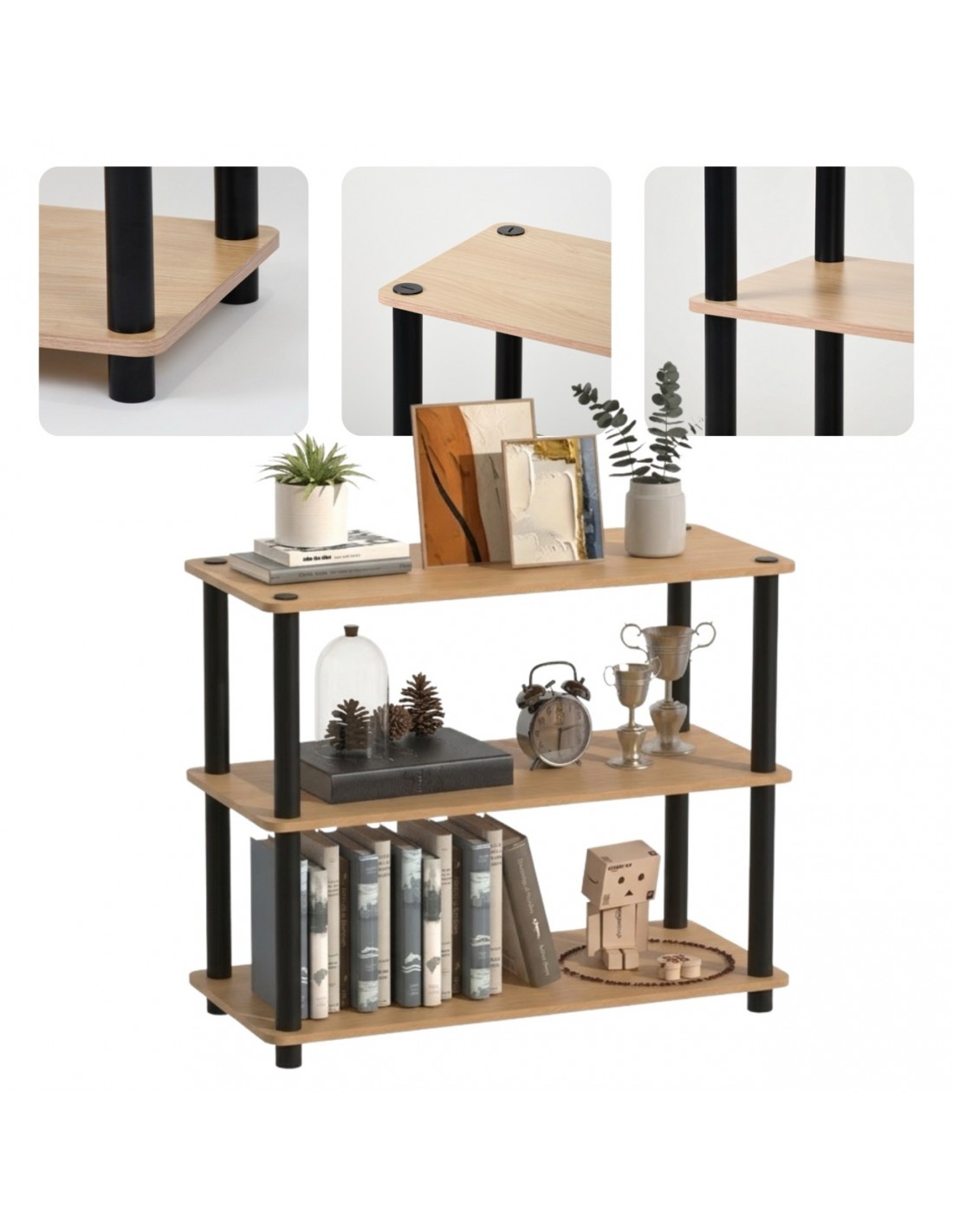 • Półki poziome: 3 sztuki, wykonane z solidnej płyty MDF