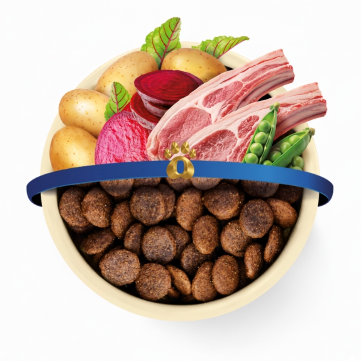 SKŁAD: Mięso i produkty pochodzenia zwierzęcego 38% (w tym świeża jagnięcina 4%), produkty pochodzenia roślinnego, warzywa