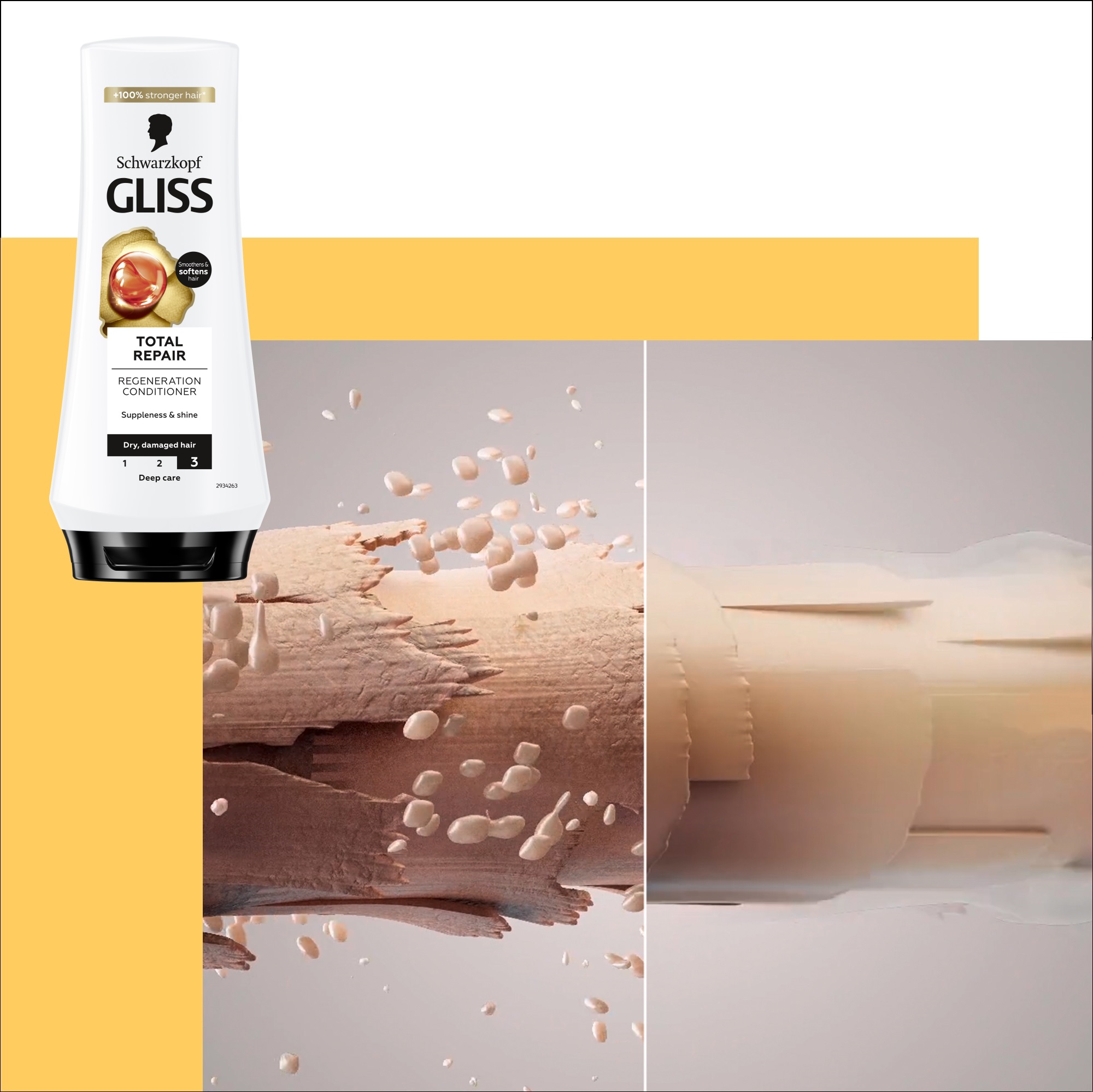 - Produkty Gliss naprawiają istniejące uszkodzenia i zapobiegają powstawaniu nowym poprzez wzmocnienie struktury włosa.