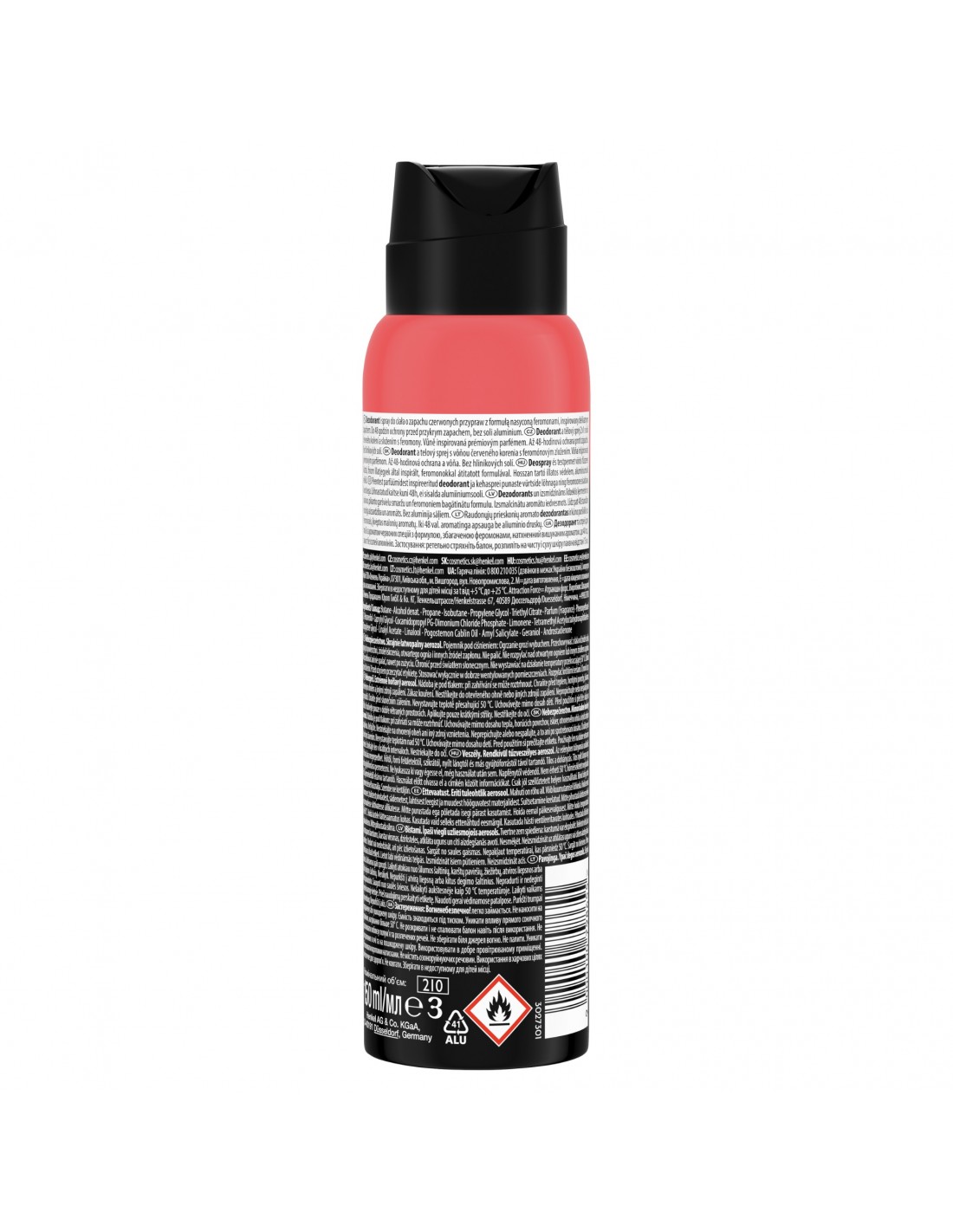 Skład: Butane*Alcohol denat.*Propane*Isobutane*Parfum (Fragrance)*Propylene Glycol*Triethyl Citrate*Phenoxyethanol*1,2-Hexanediol*Caprylyl Glycol*Limonene*Cocamidopropyl PG-Dimonium Chloride Phosphate*Linalool*Dipropylene Glycol*Alpha-Isomethyl Ionone*Coumarin*Eugenol*Benzyl Alcohol*Androstadienone