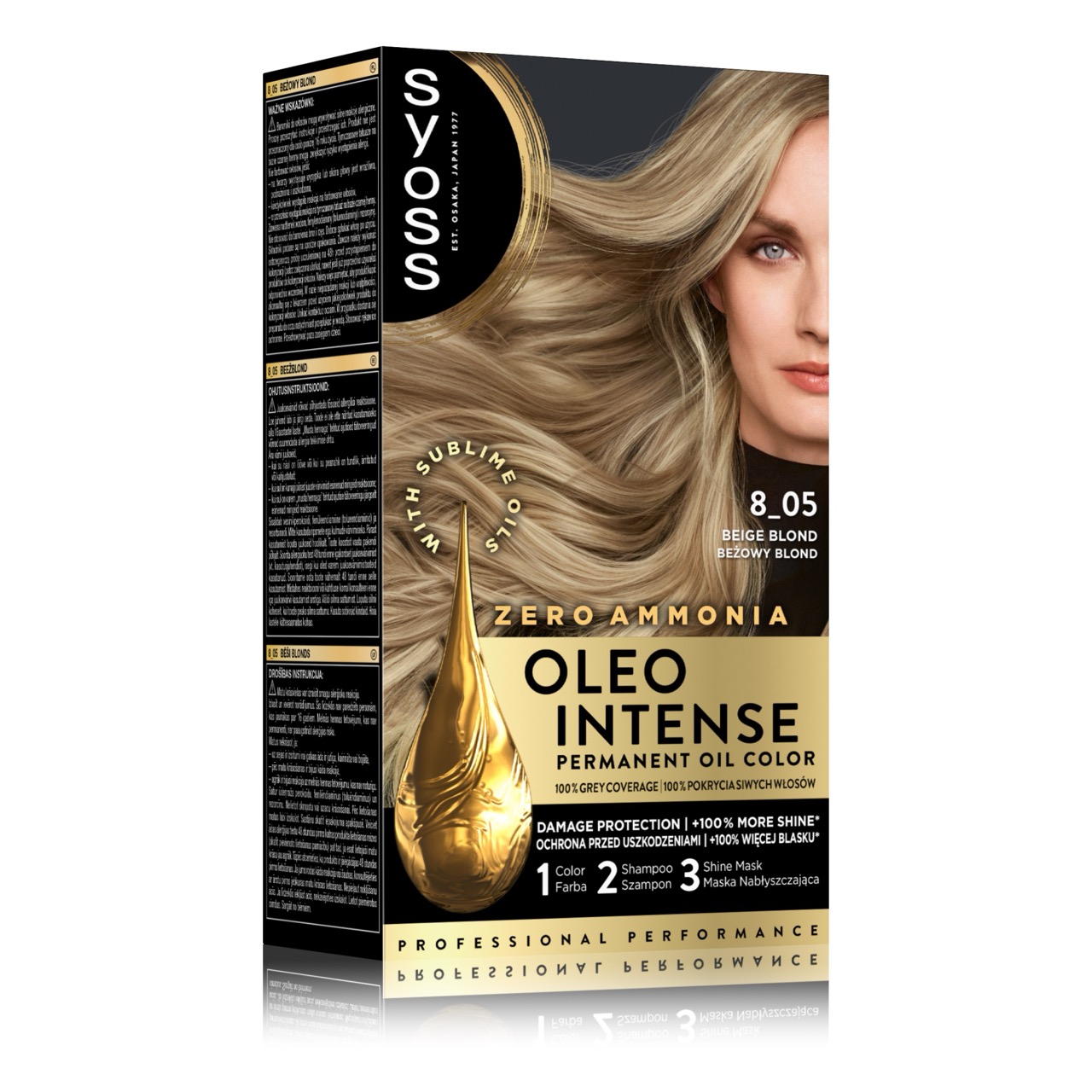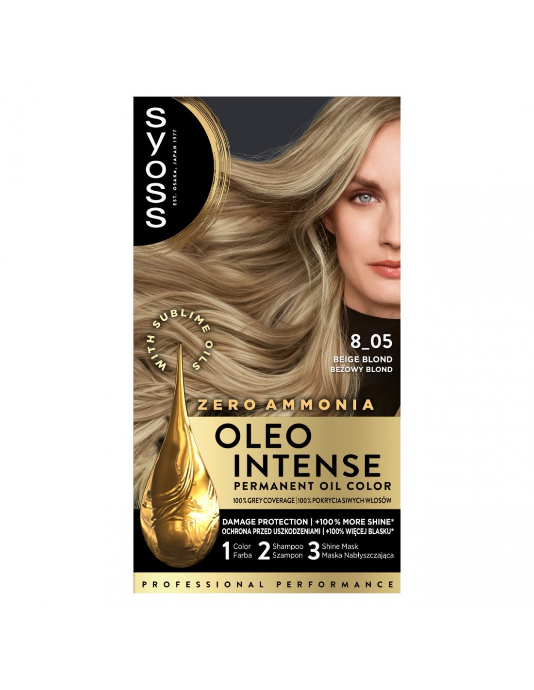 Syoss Oleo Intense 8-05 Beżowy Blond – trwała farba do włosów bez amoniaku z pielęgnującymi olejkami