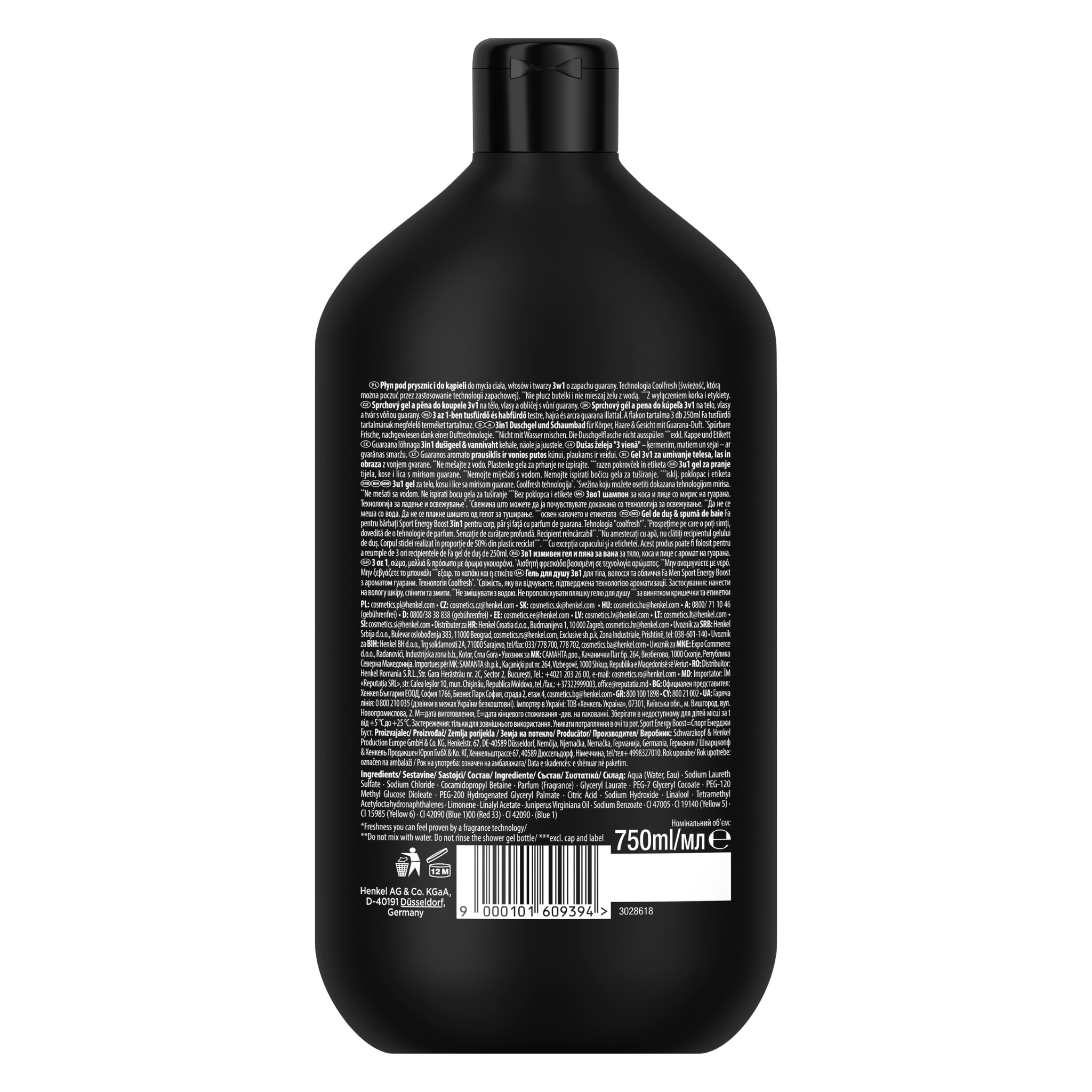 Wybierz Fa Men Sport Energy Boost żel pod prysznic z formułą 3w1: do efektywnego oczyszczania ciała, twarzy i włosów o odświeżającym i pobudzającym zapachu guarany i żeń-szenia, który zapewni Ci kompleksowe pobudzenie pod prysznicem. Odśwież swoje ciało i umysł - pozwól swoim zmysłom odkrywać nowe doznania każdego dnia.
